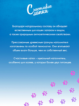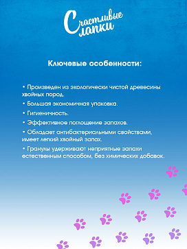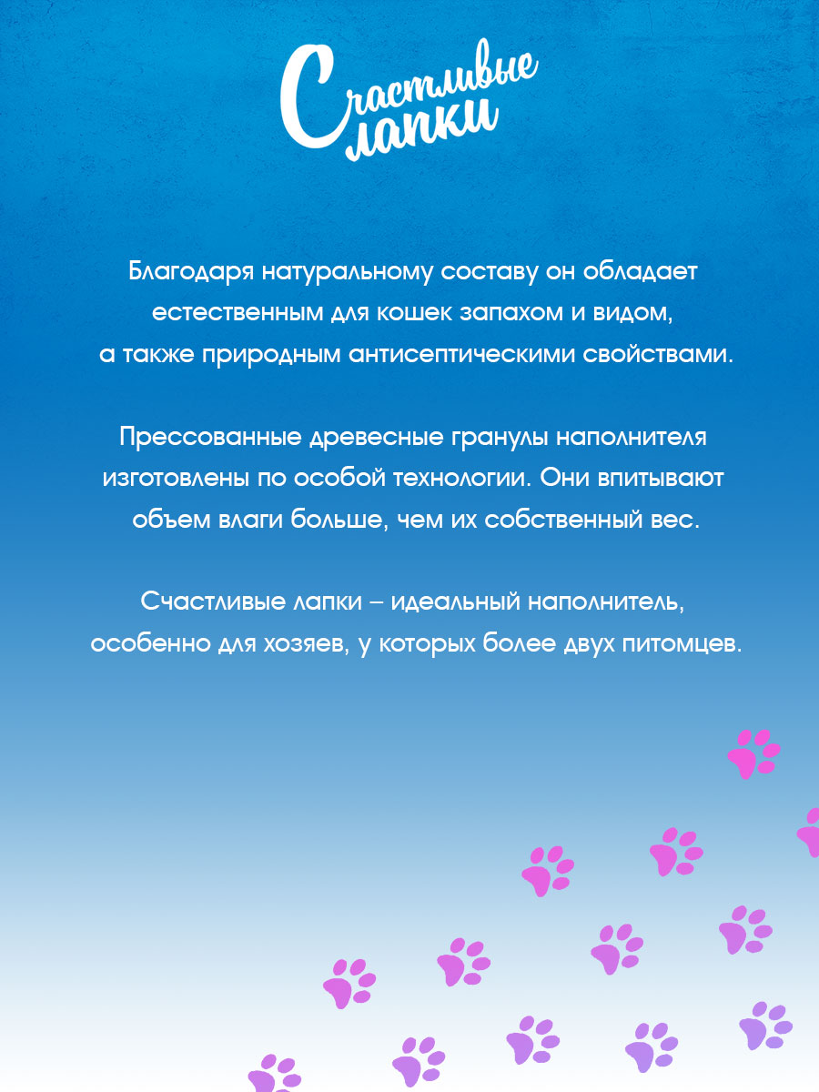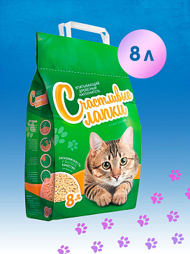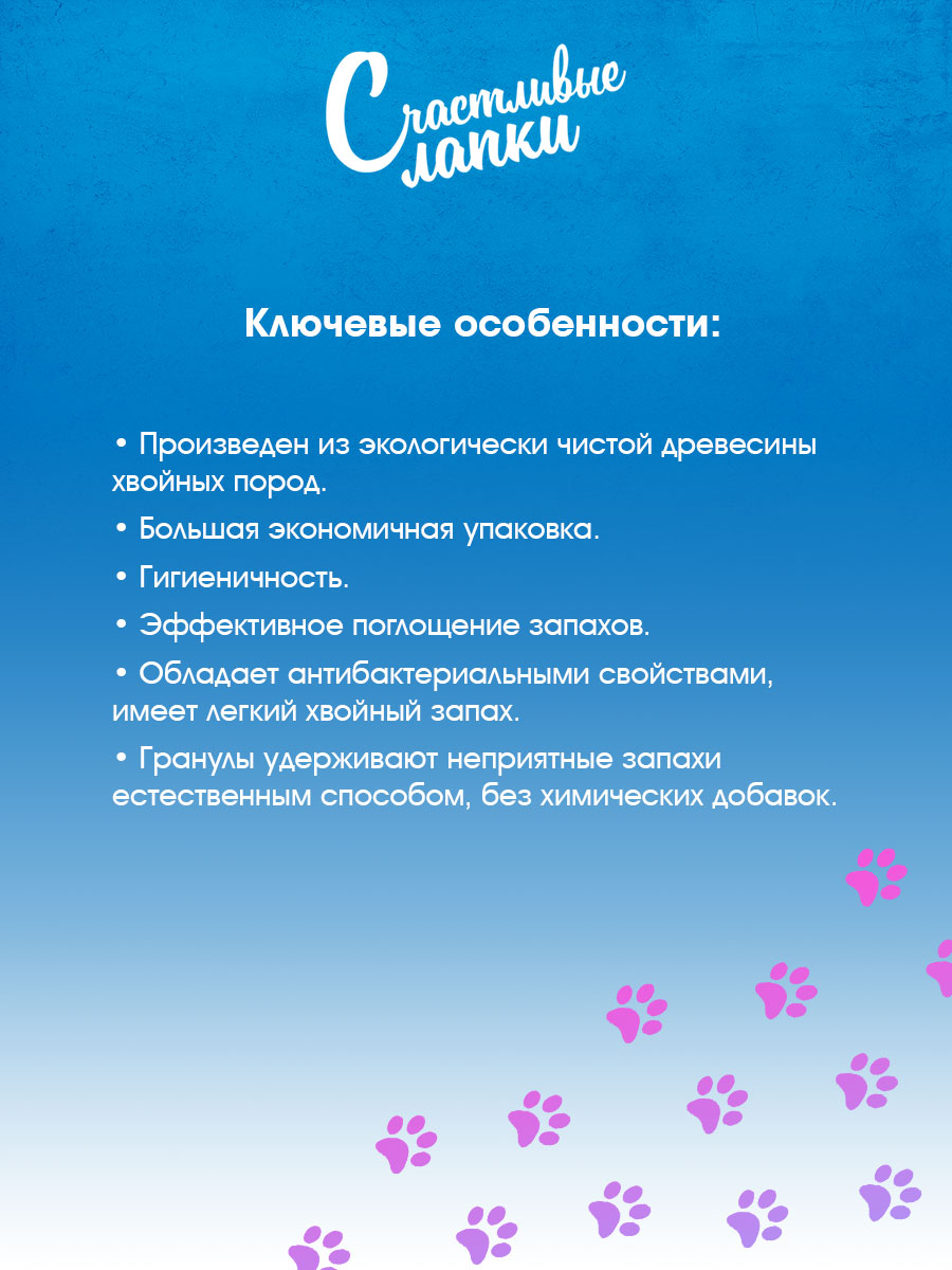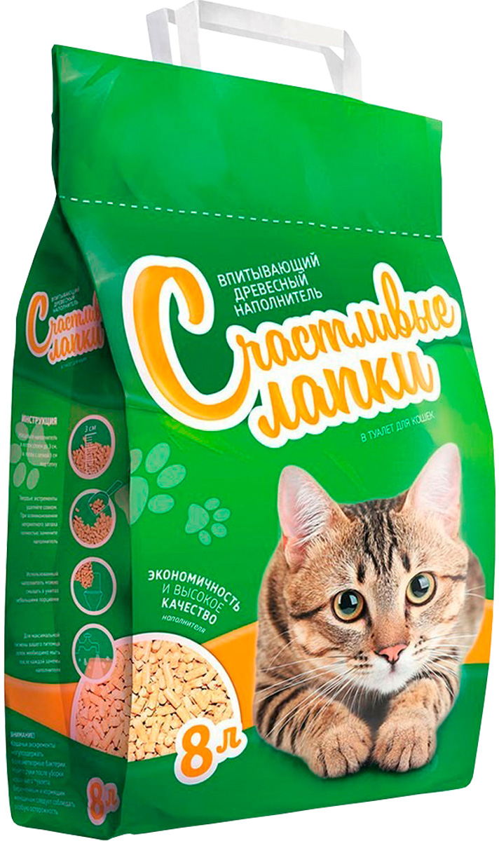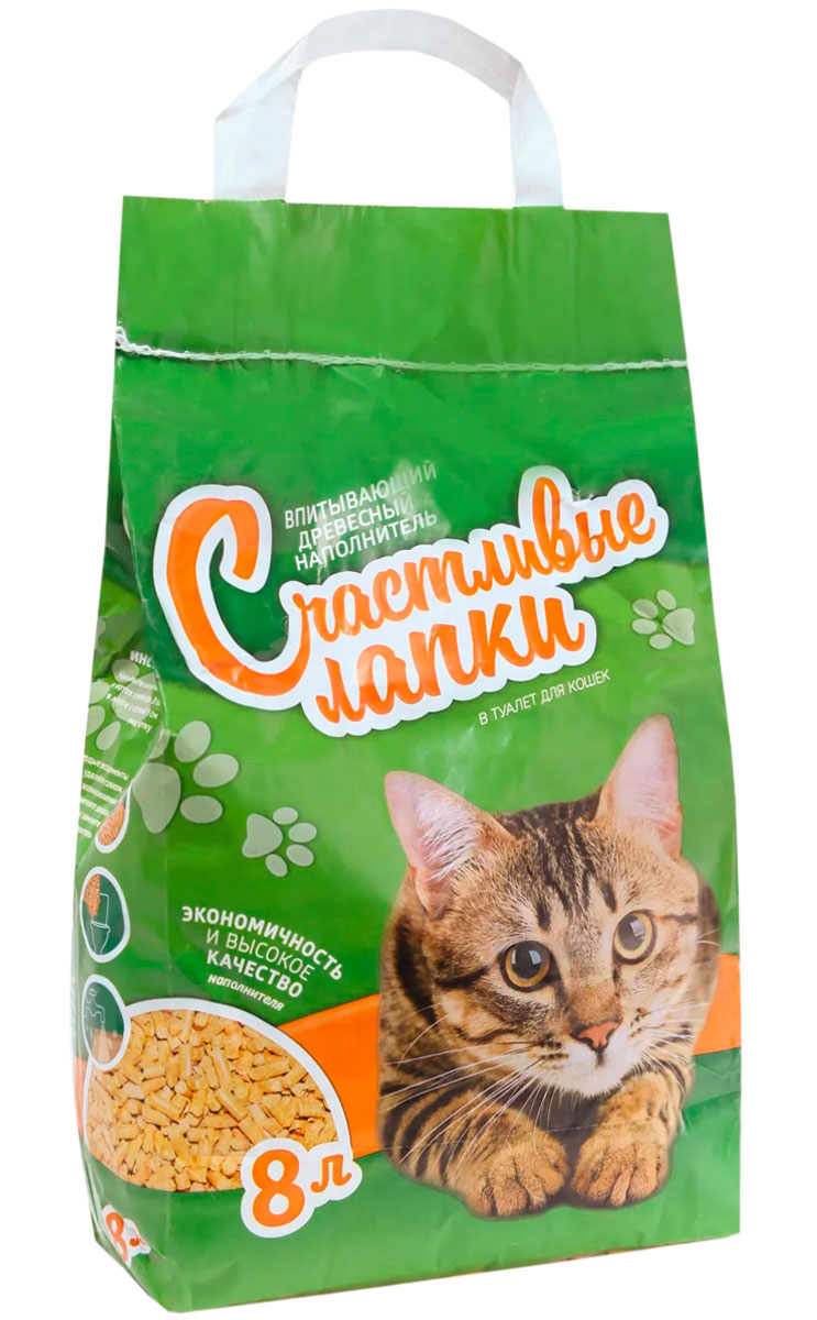 СЧАСТЛИВЫЕ ЛАПКИ – наполнитель древесный для туалета кошек (8 л)