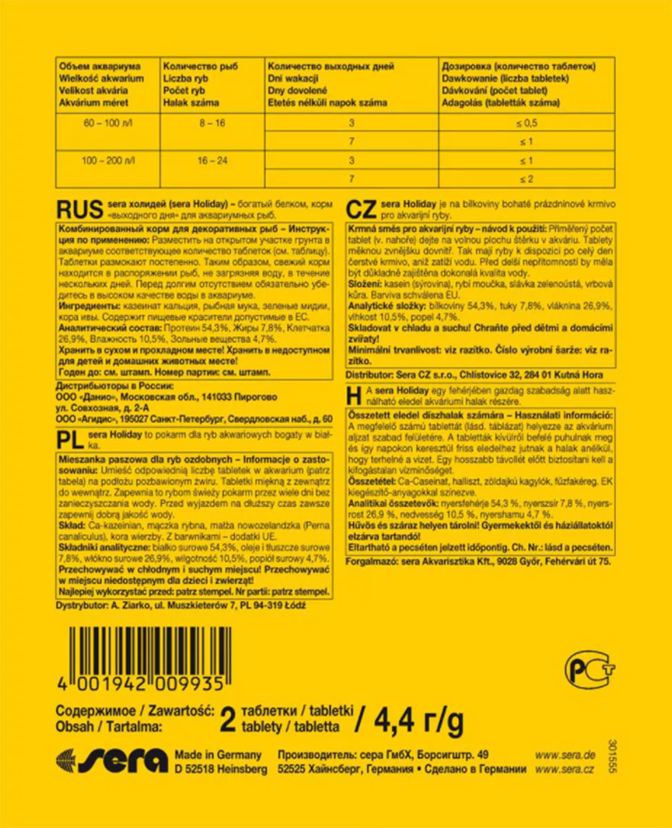 SERA HOLIDAY корм выходного дня для рыб (2 т х 2 шт)