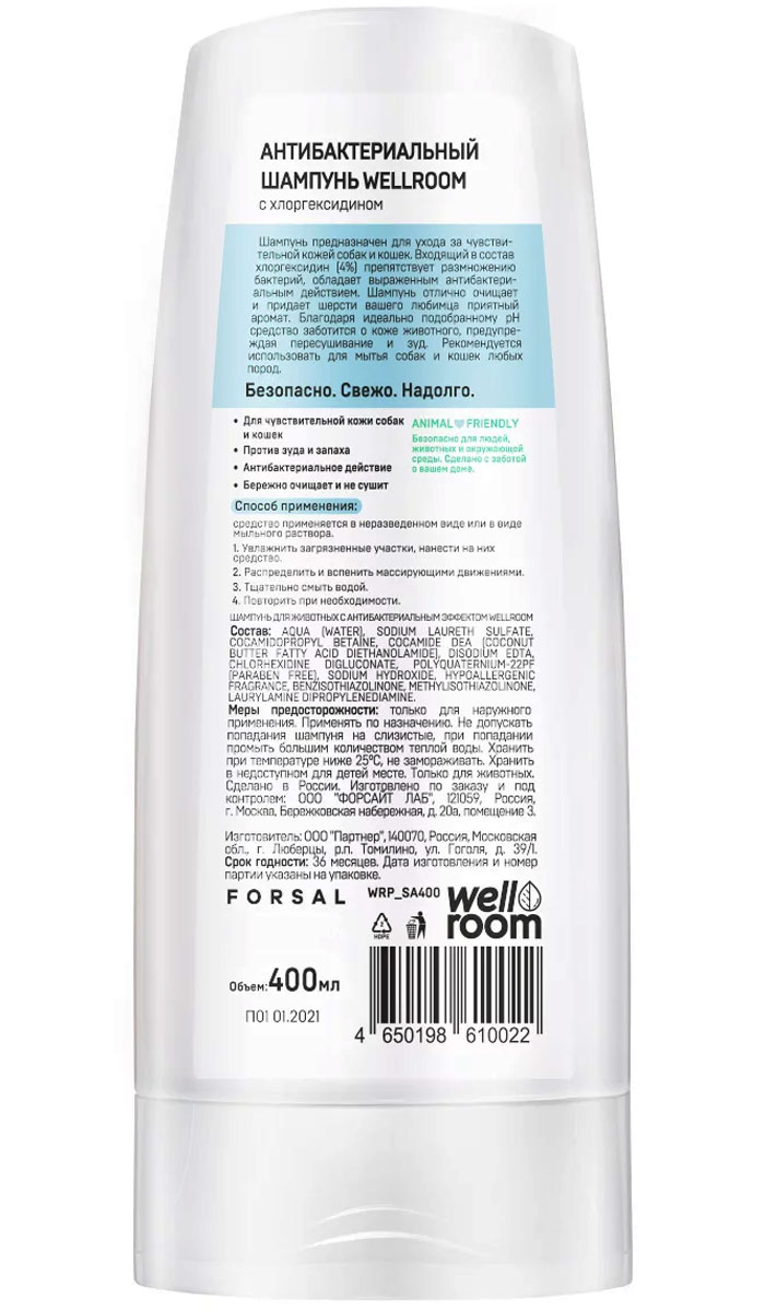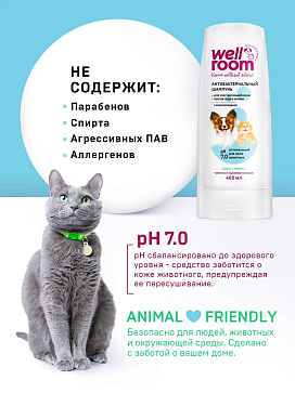 Шампунь антибактериальный Wellroom для животных с хлоргексидином 400 мл (1 шт)