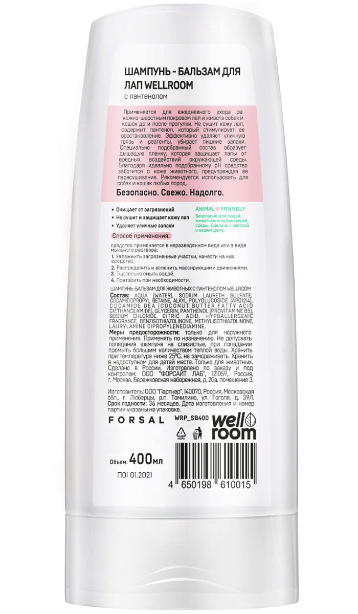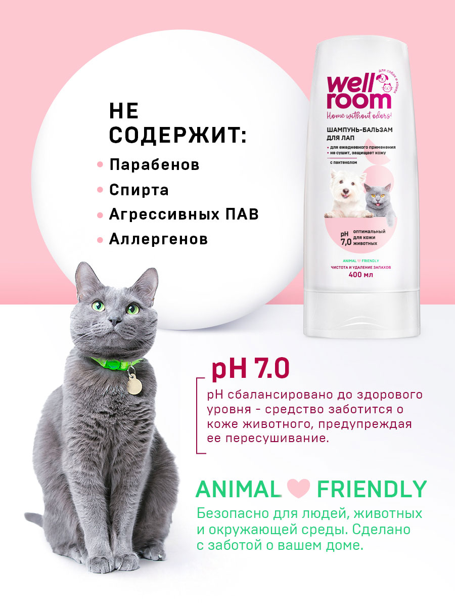 Шампунь-бальзам для лап Wellroom для животных с пантенолом 400 мл (1 шт)