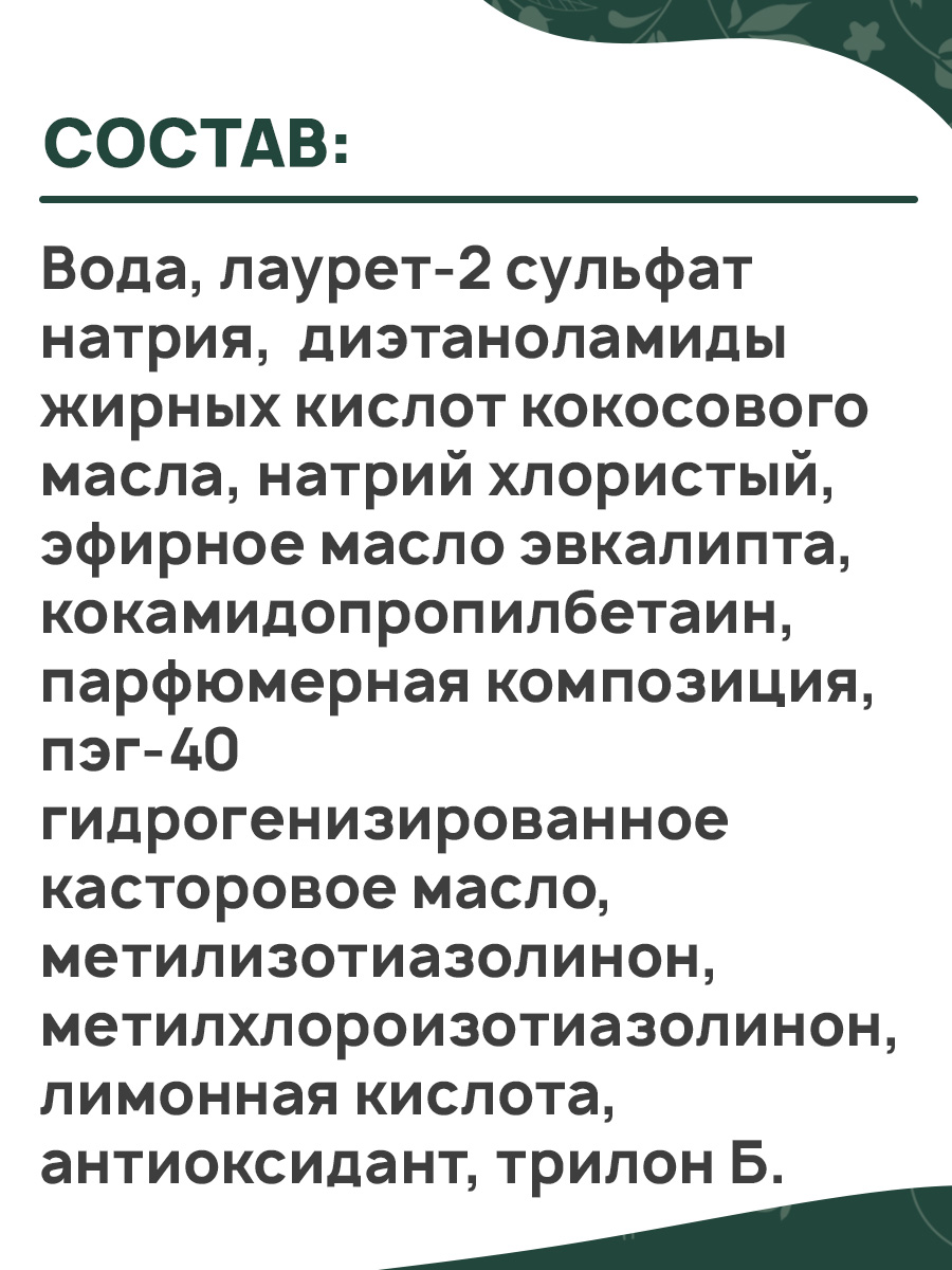 - Содержит эфирное масло эвкалипта.