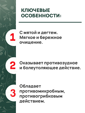 Благодаря входящему в состав маслу эвкалипта обладает мощным противовоспалительным и ранозаживляющим действием. Щадящая формула шампуня подходит для ежедневного ухода за лапами.