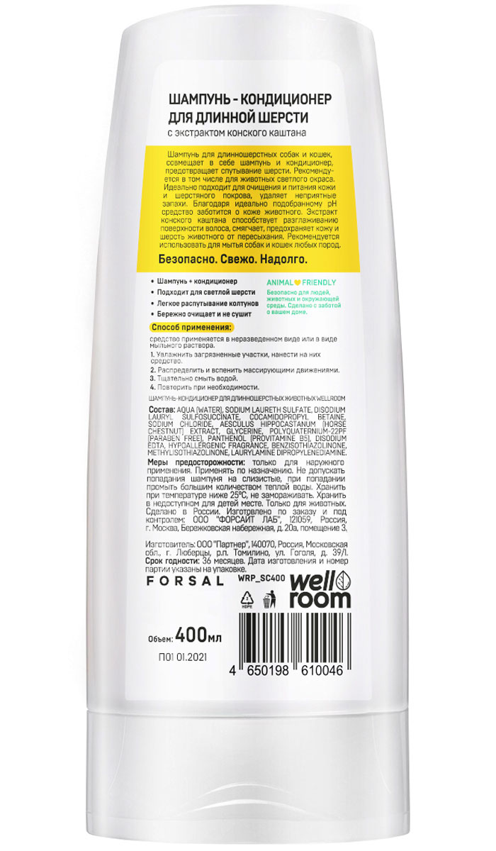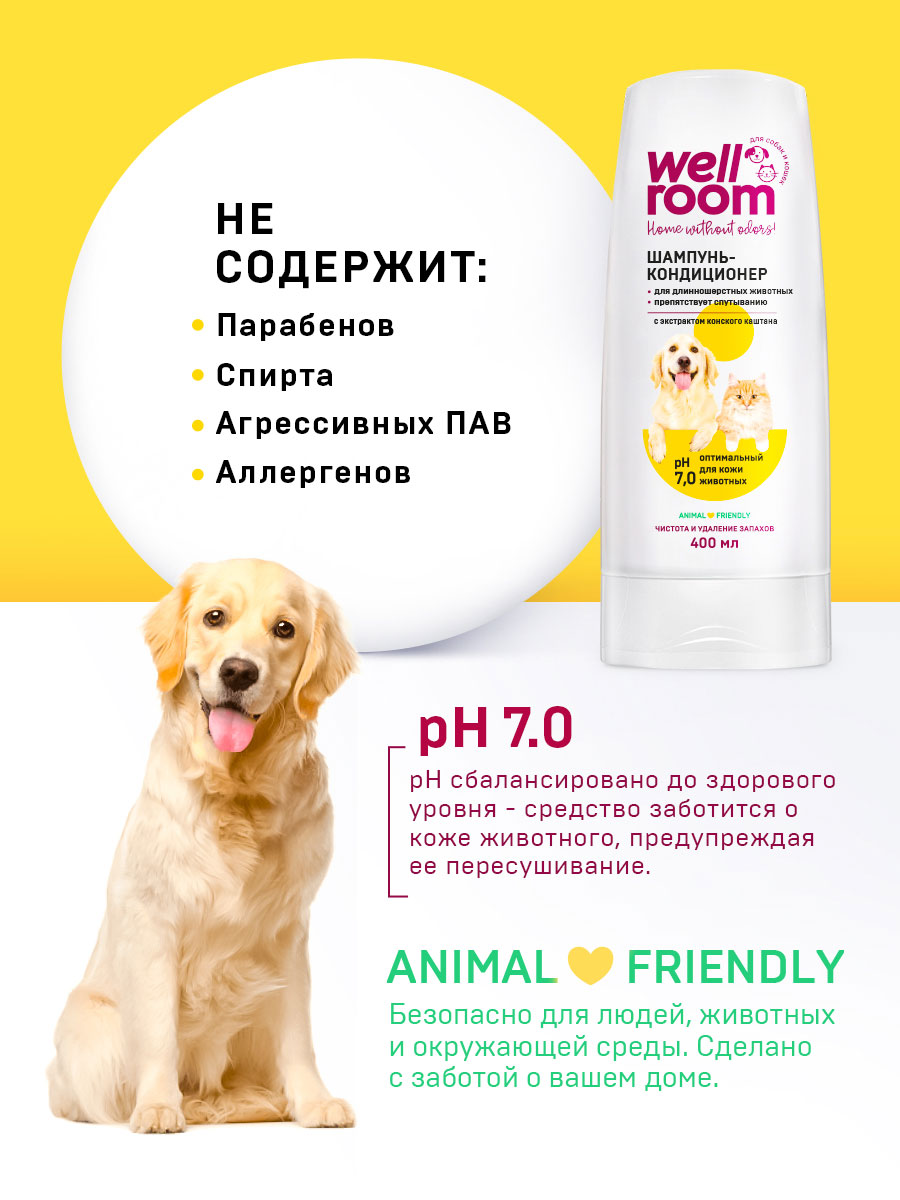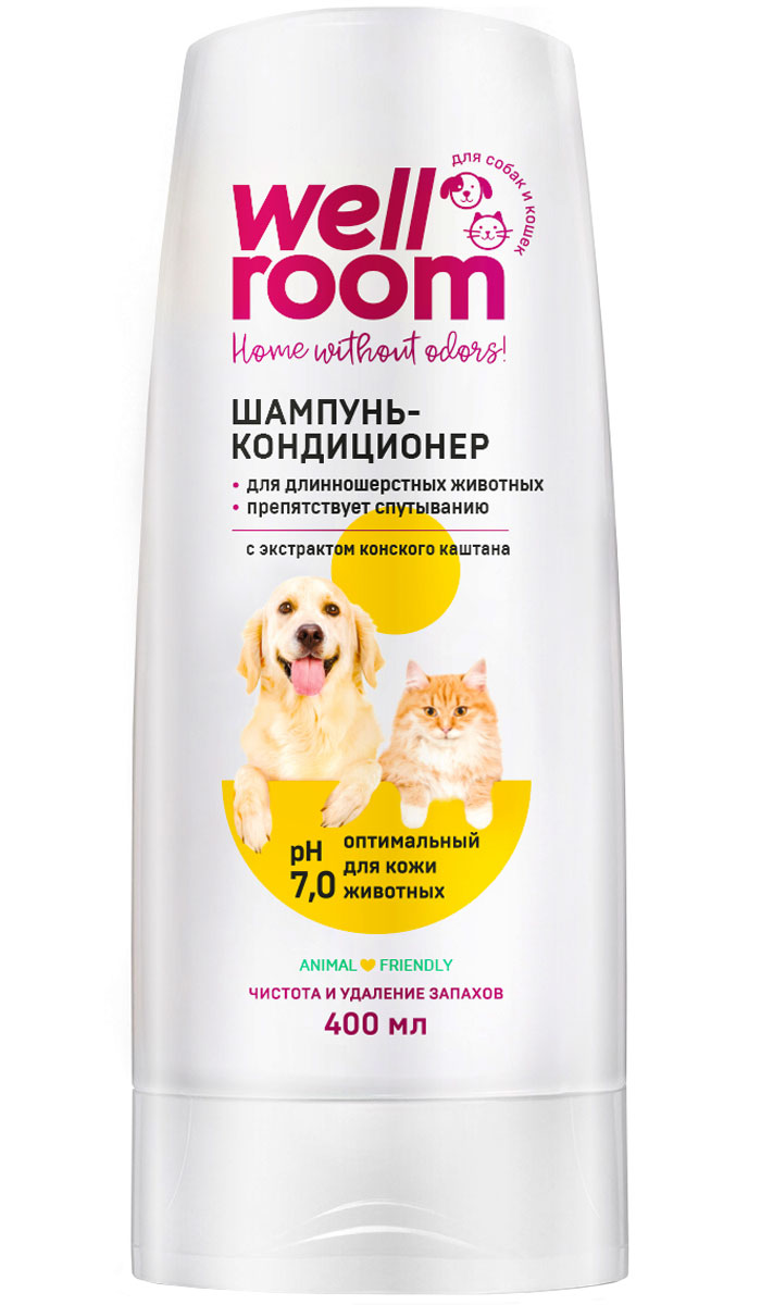 Шампунь-кондиционер Wellroom для длинношерстных животных с экстрактом конского каштана 400 мл (1 шт)