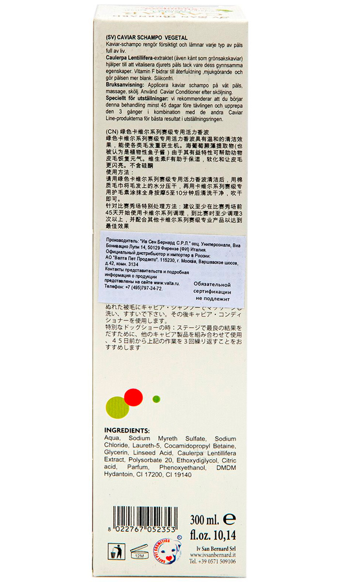 Шампунь икры Iv San Bernard Green Caviar деликатно очищает и заряжает энергией любой тип шерсти.