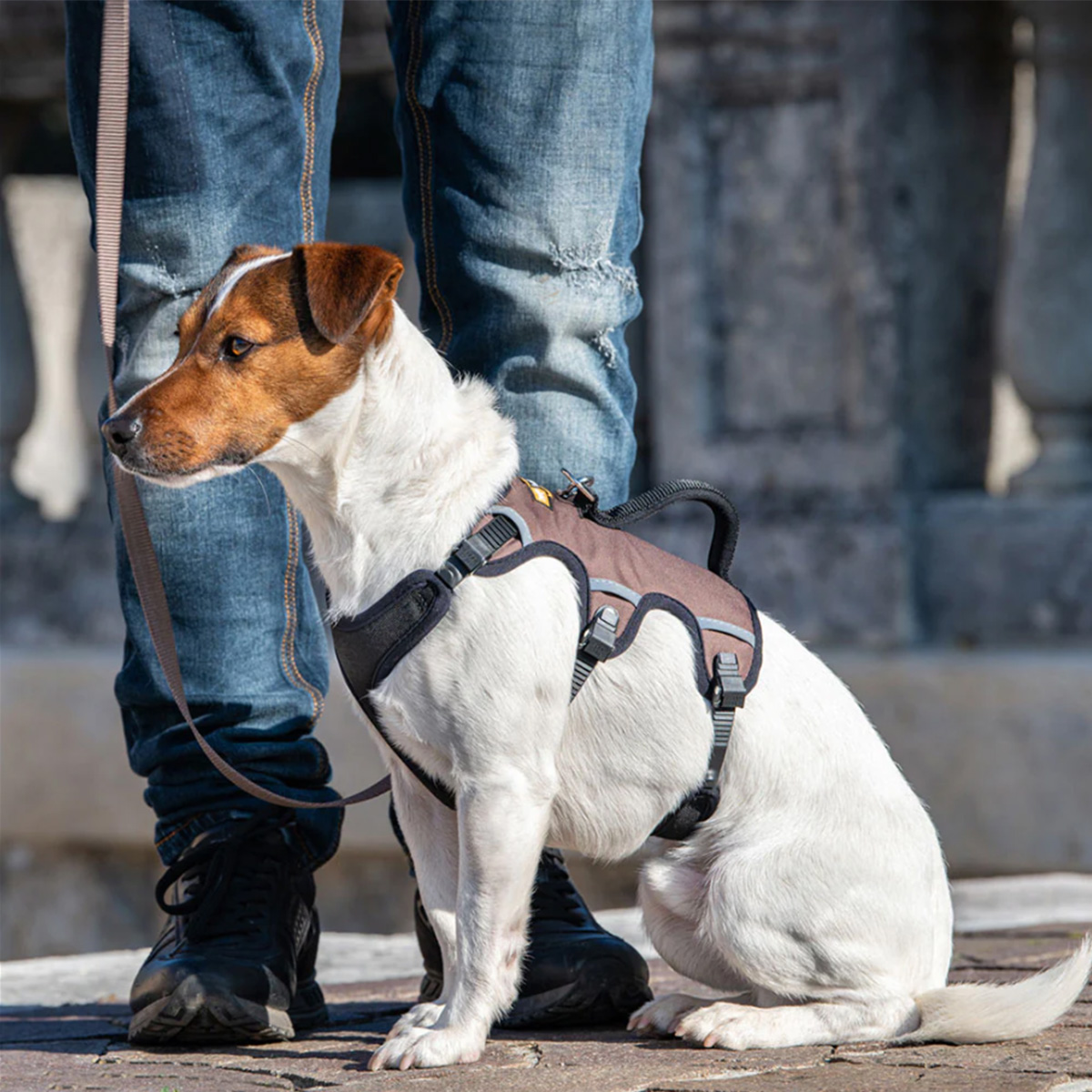 Мягкая поролоновая прокладка ремешков амортизирует натяжение и создает комфорт для собаки, поскольку имеет особую поддерживающую форму.