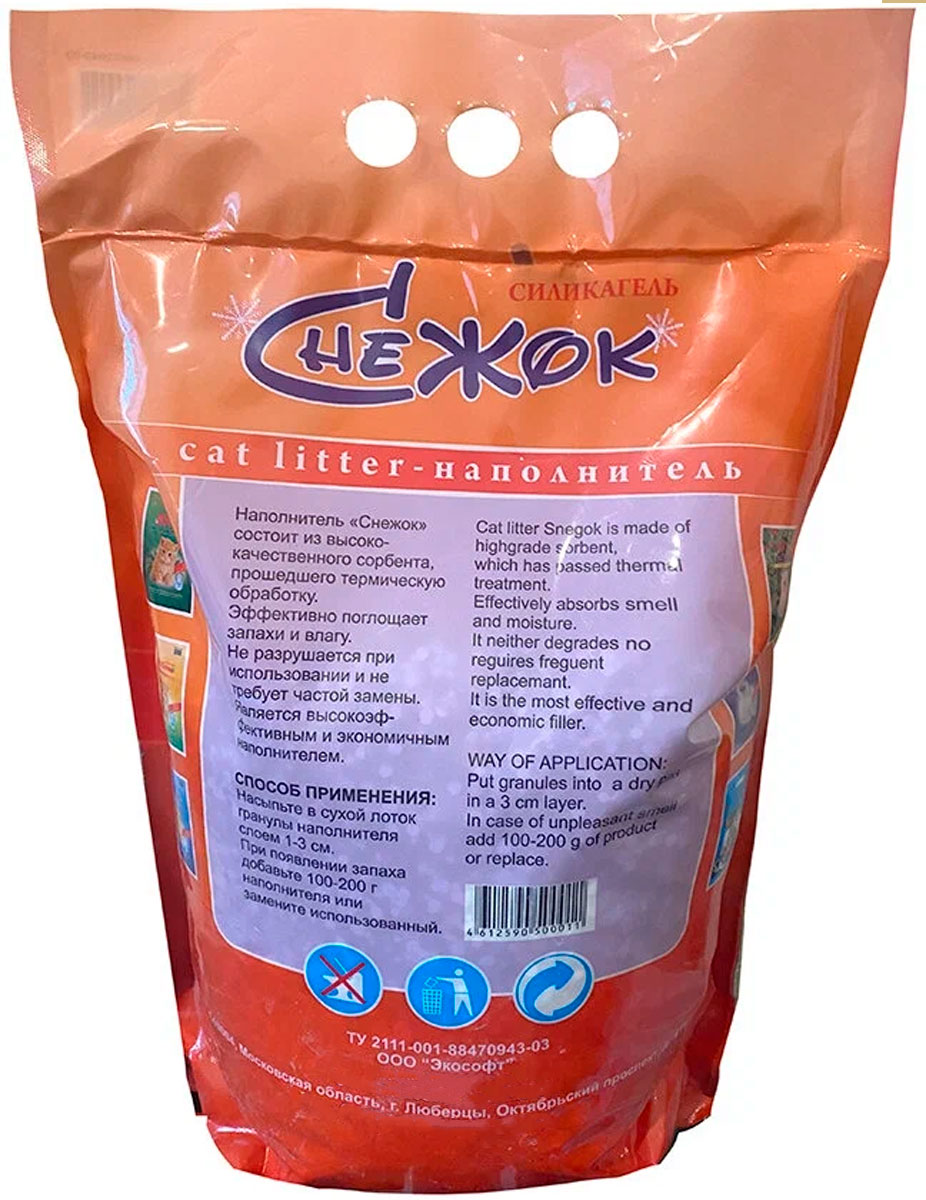 СНЕЖОК СИЛИКАГЕЛЬ - наполнитель силикагелевый для туалета кошек (4 л)