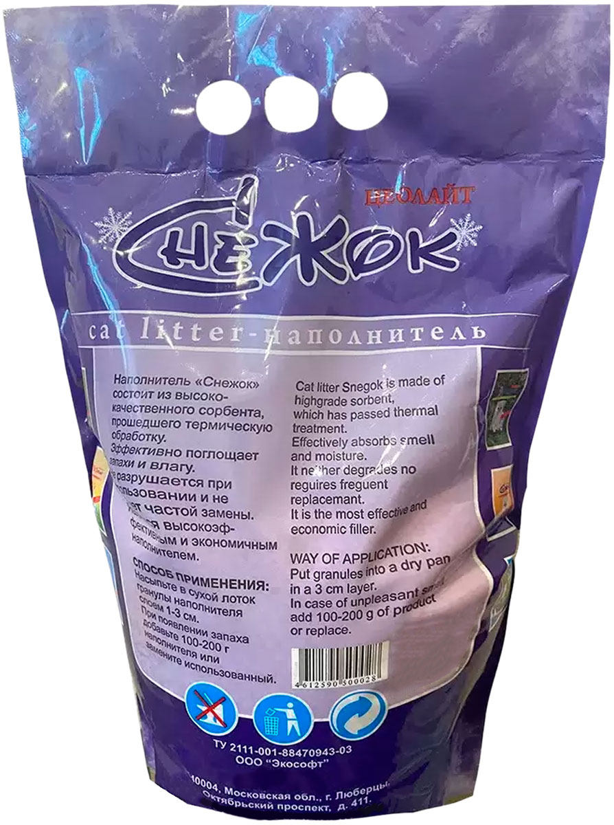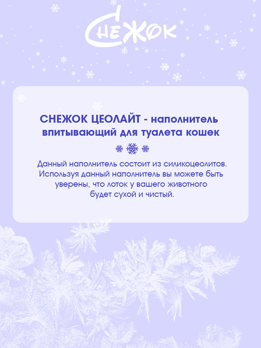 Впитывающий наполнитель для кошачьего туалета Снежок-Цеолайт.
