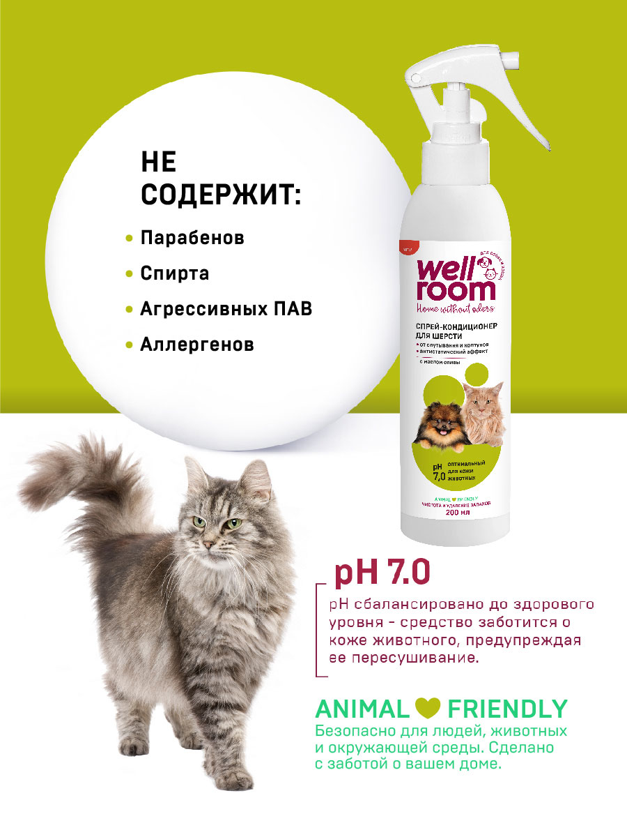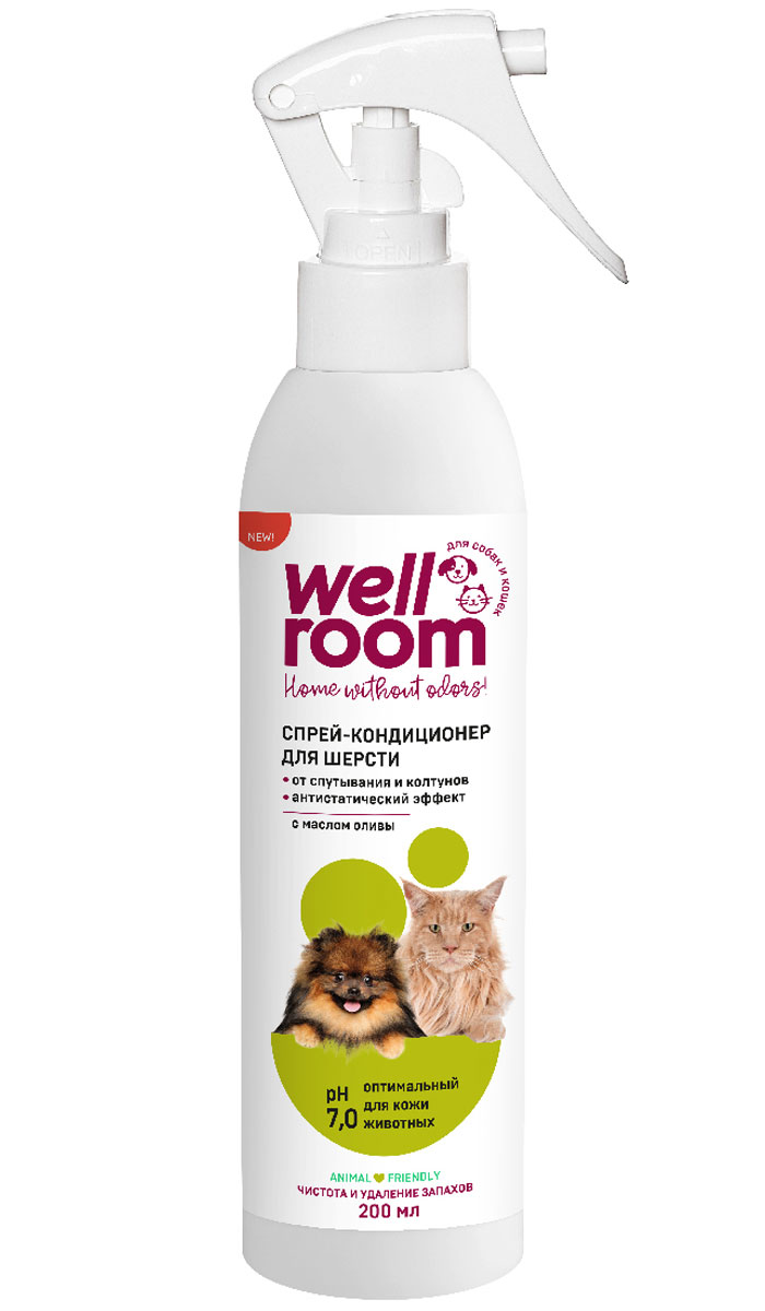 Спрей-кондиционер Wellroom для животных от колтунов и спутывания шерсти с маслом оливы 200 мл (1 шт)