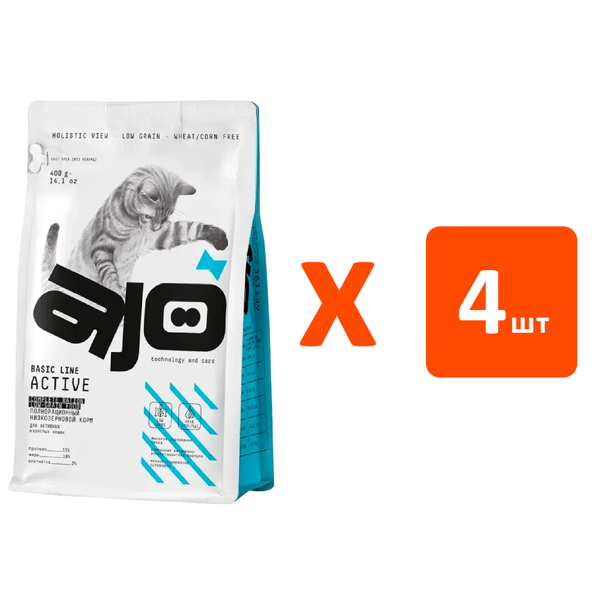Сухой корм для активных кошек AJO CAT BASIC LINE АCTIVE низкозерновой, индейка (0,4 кг х 4 шт)
