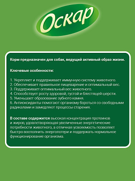 Сухой корм для активных собак ОСКАР (2,2 кг)