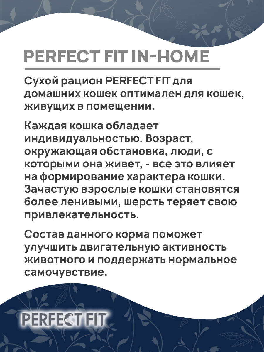 Сухой рацион PERFECT FIT для домашних кошек оптимален для кошек, живущих в помещении.