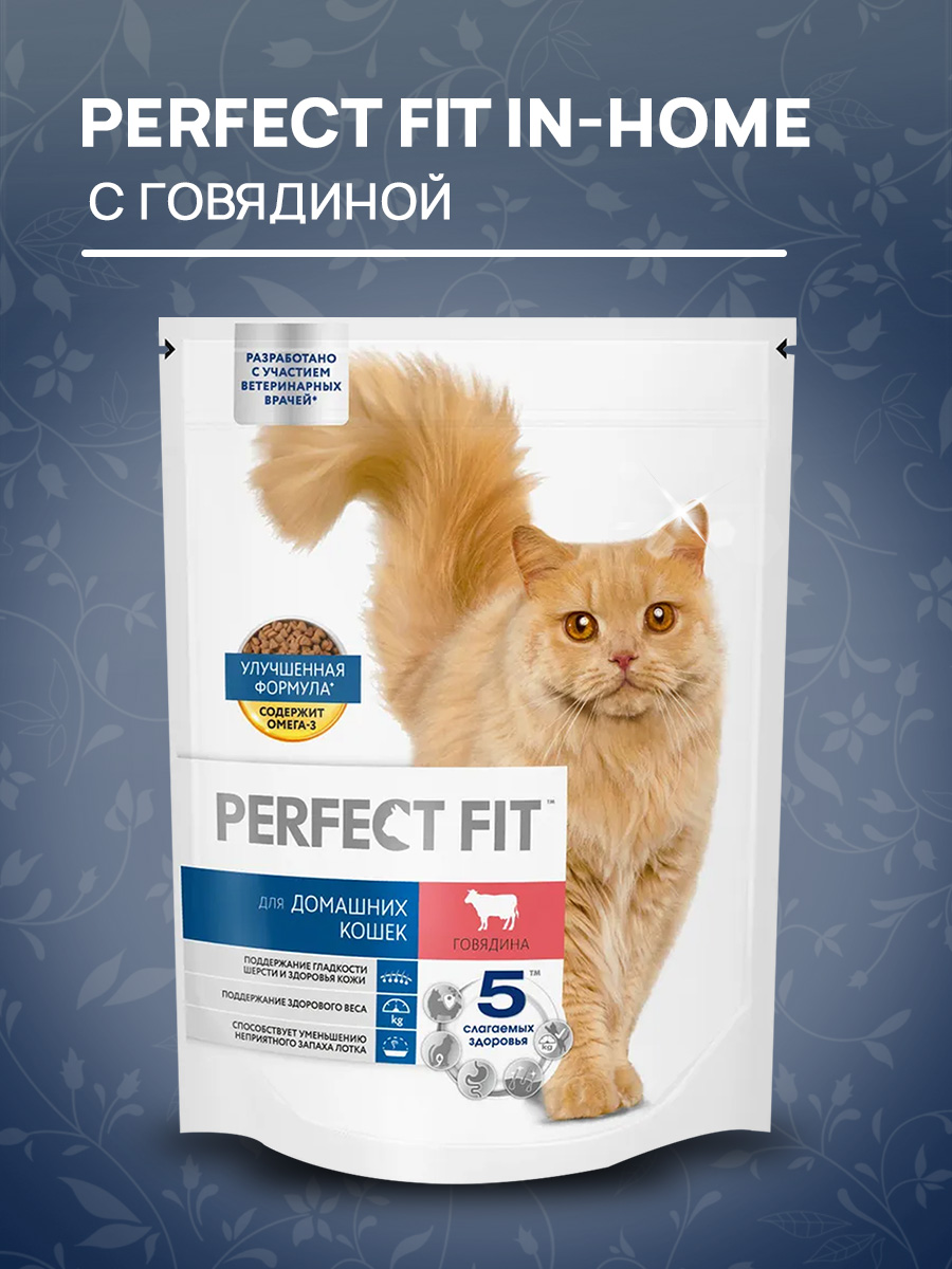 Сухой корм для домашних кошек PERFECT FIT IN-HOME говядина (0,65 кг)