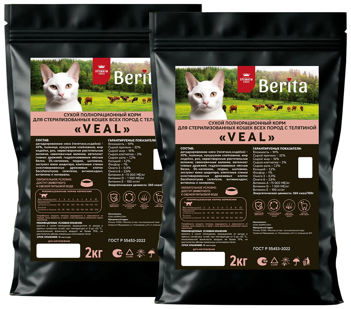 Сухой корм для кастрированных котов и стерилизованных кошек BERITA VEAL телятина (2 + 2 кг)