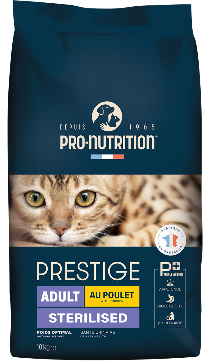 Сбалансированный минеральный состав корма FLATAZOR PRESTIGE ADULT STERILISED CHICKEN и пониженное количество минералов снижают нагрузку на почки и позволяют нормализовать pH мочи, снижая риск образования уролитов.