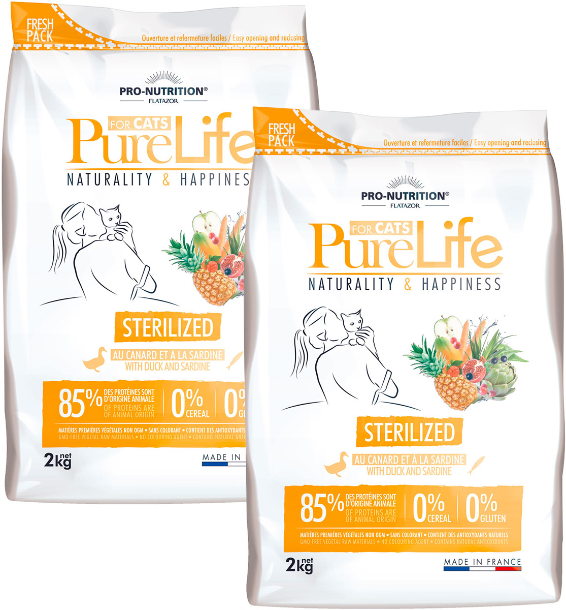 Сухой корм для кастрированных котов и стерилизованных кошек FLATAZOR PURE LIFE ADULT STERILISED (2 + 2 кг)