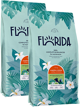 Сбалансированное полнорационное питание заботится о коже и шерсти и способствует здоровому пищеварению. В рационе кормов Florida используется только белок животного происхождения.