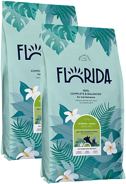 Сухой корм для кастрированных котов и стерилизованных кошек FLORIDA ягненок, груша (12 + 12 кг)