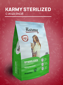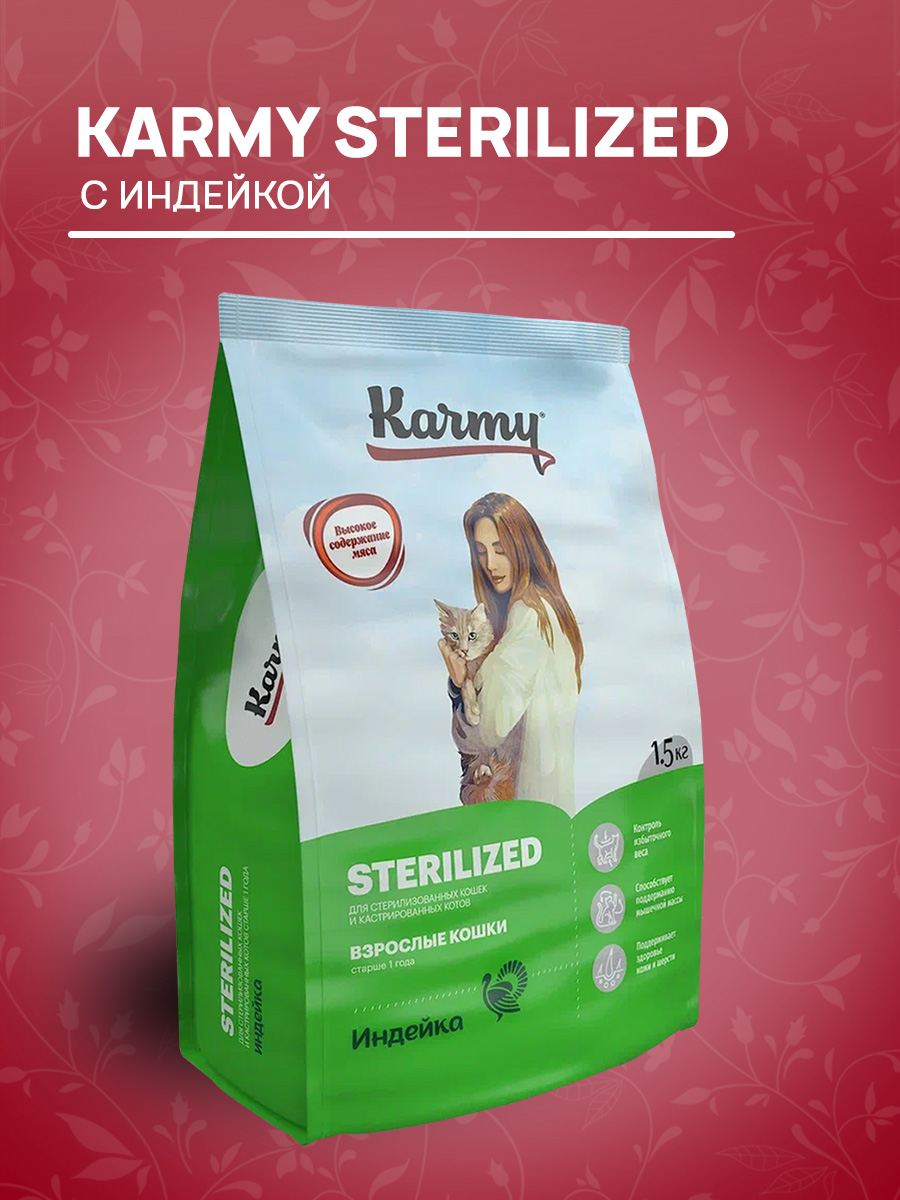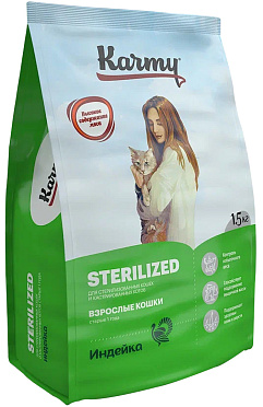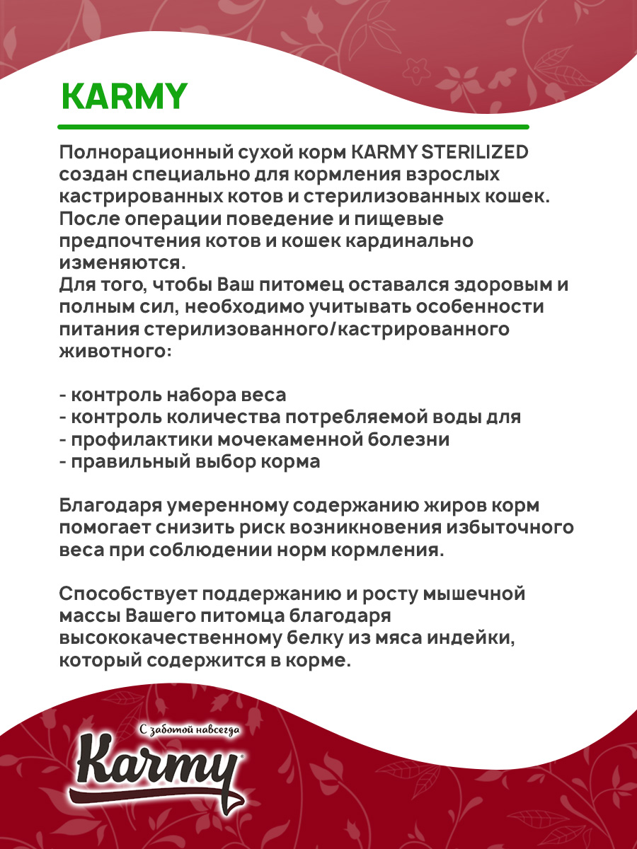Сухой корм для кастрированных котов и стерилизованных кошек KARMY STERILIZED индейка (1,5 кг)