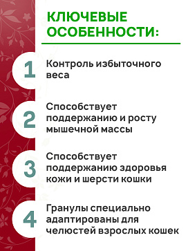 - Способствует поддержанию здоровья кожи и шерсти кошки.