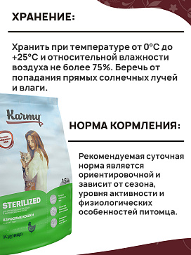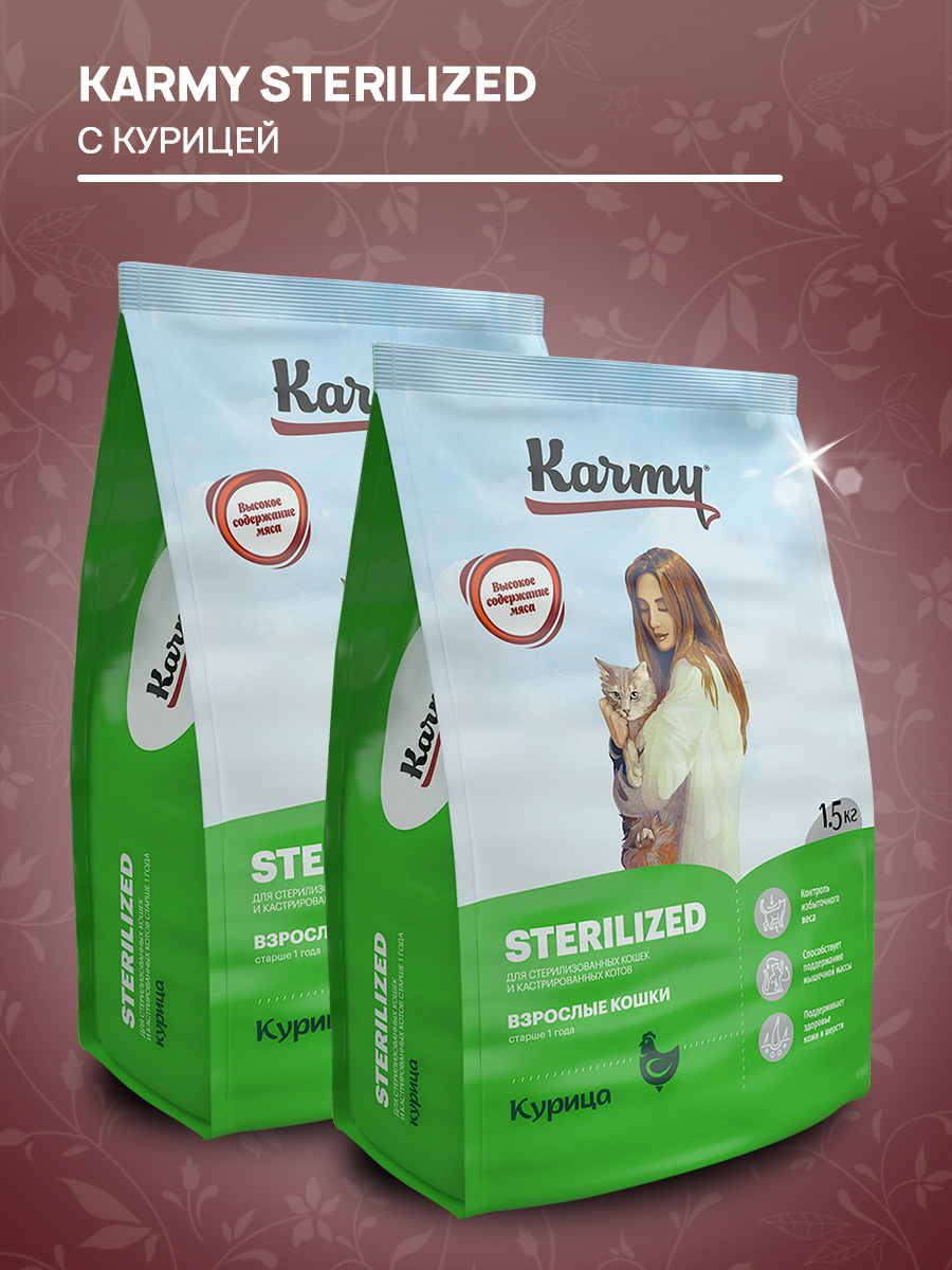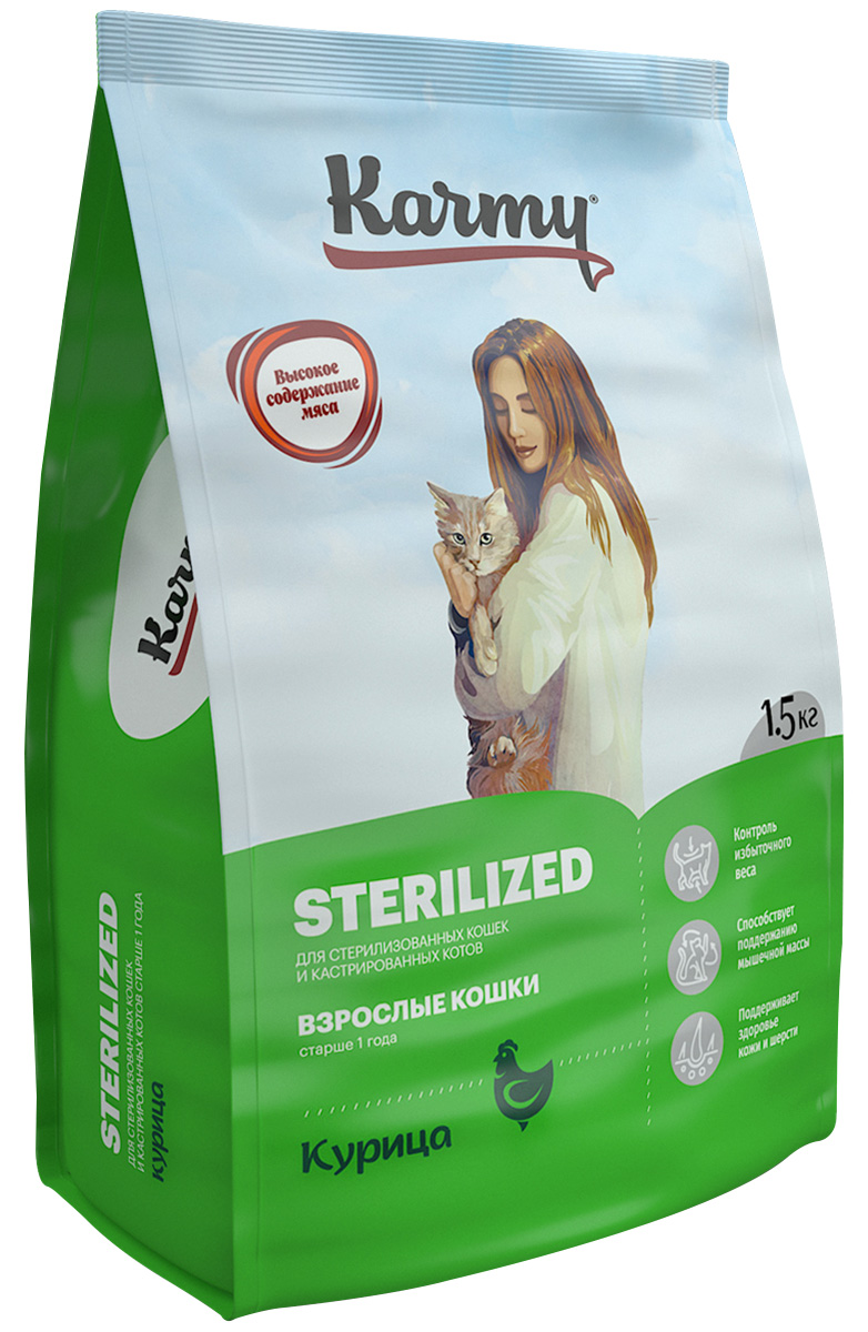 Сухой корм для кастрированных котов и стерилизованных кошек KARMY STERILIZED курица (1,5 кг)