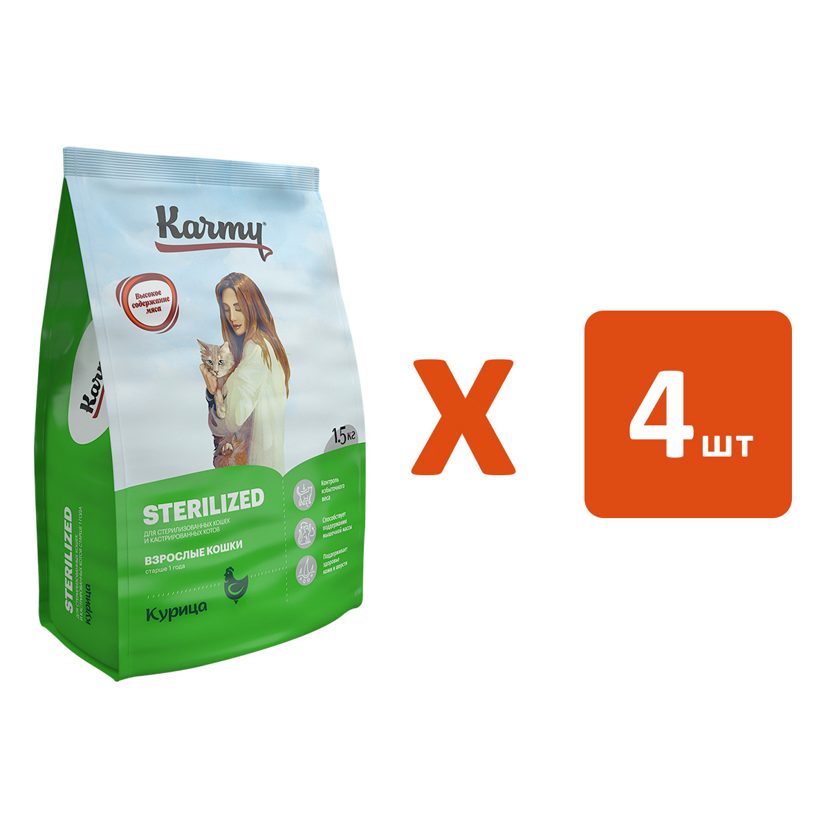 Сухой корм для кастрированных котов и стерилизованных кошек KARMY STERILIZED курица (1,5 кг х 4 шт)