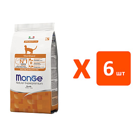 Сухой корм для кастрированных котов и стерилизованных кошек MONGE SPECIALITY MONOPROTEIN STERILISED монобелковый утка (1,5 кг х 6 шт)