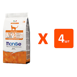 Сухой корм для кастрированных котов и стерилизованных кошек MONGE SPECIALITY MONOPROTEIN STERILISED монобелковый утка (10 кг х 4 шт)