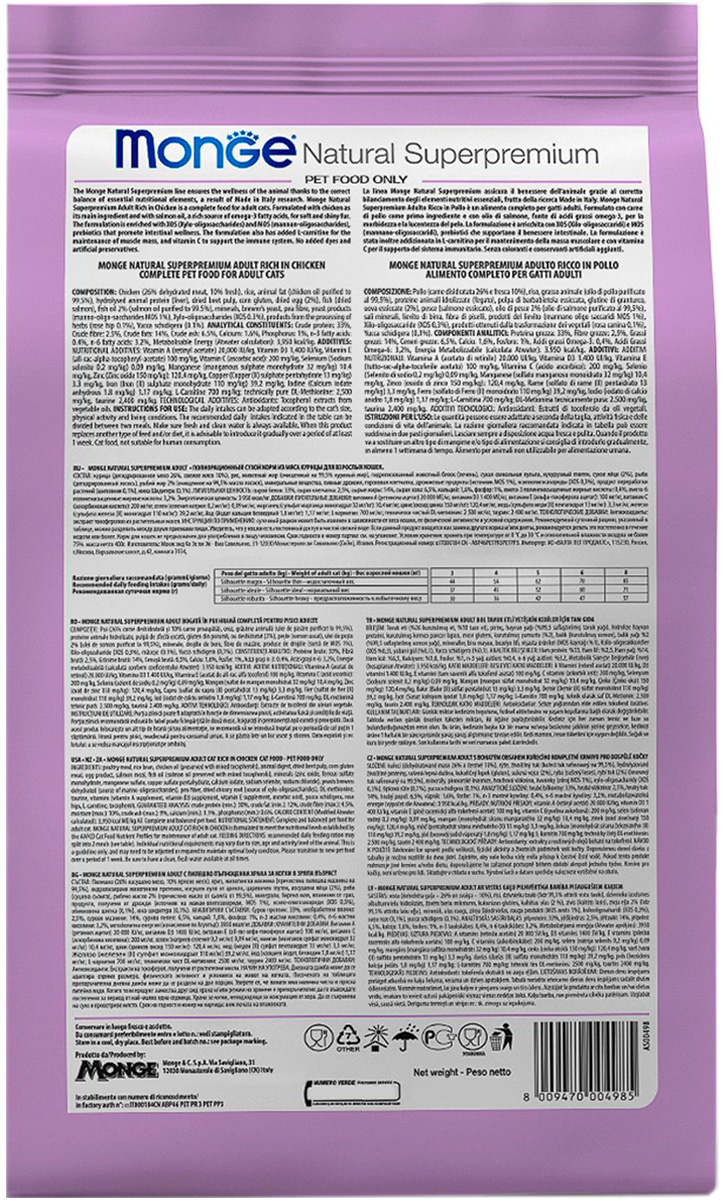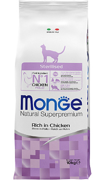Сухой корм для кастрированных котов и стерилизованных кошек MONGE STERILISED курица (10 кг)