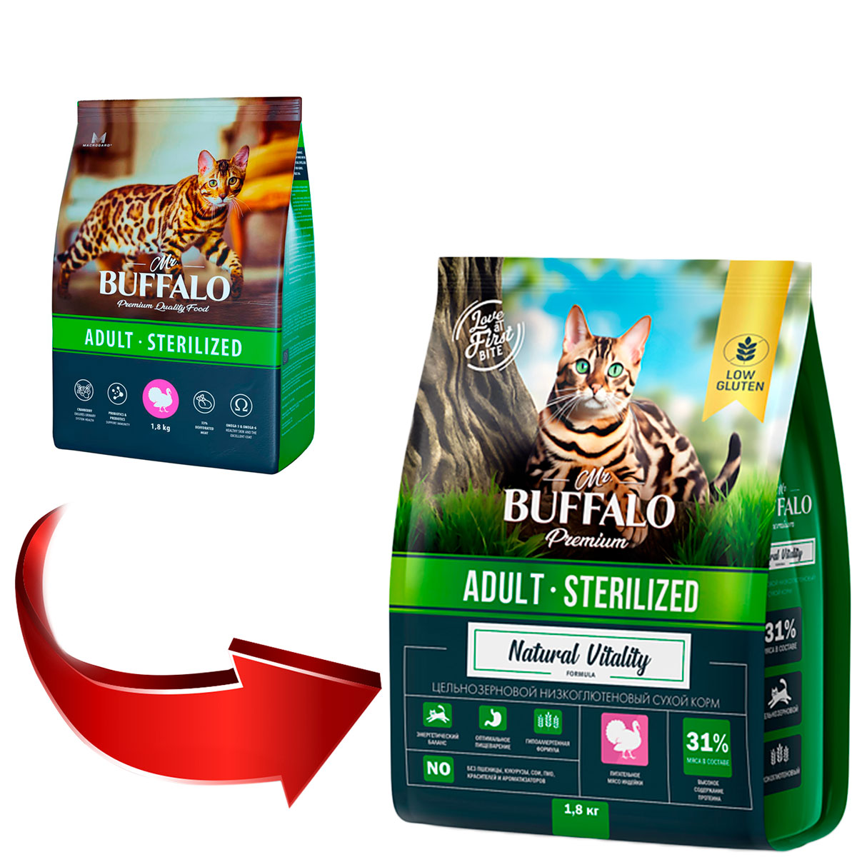 Сухой корм для кастрированных котов и стерилизованных кошек MR.BUFFALO ADULT STERILIZED индейка (1,8 кг)