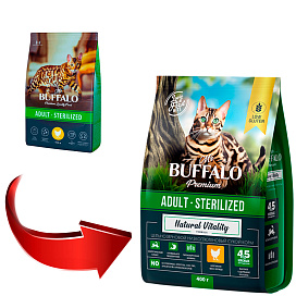 Полнорационный сухой корм Mr. Buffalo разработан с учётом потребностей стерилизованных кошек и кастрированных котов, включает все необходимые питательные вещества для поддержания жизненных сил, здоровья мочевыделительной системы, поддержания оптимального веса и мышечной массы питомца.