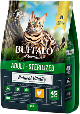 Сухой корм для кастрированных котов и стерилизованных кошек MR.BUFFALO ADULT STERILIZED курица (0,4 кг)