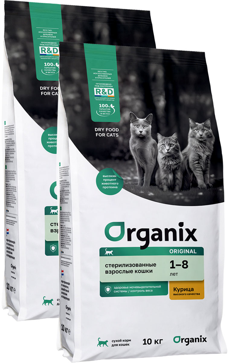 Сухой корм для кастрированных котов и стерилизованных кошек ORGANIX ORIGINAL ADULT STERILIZED курица, фрукты, овощи (10 + 10 кг)