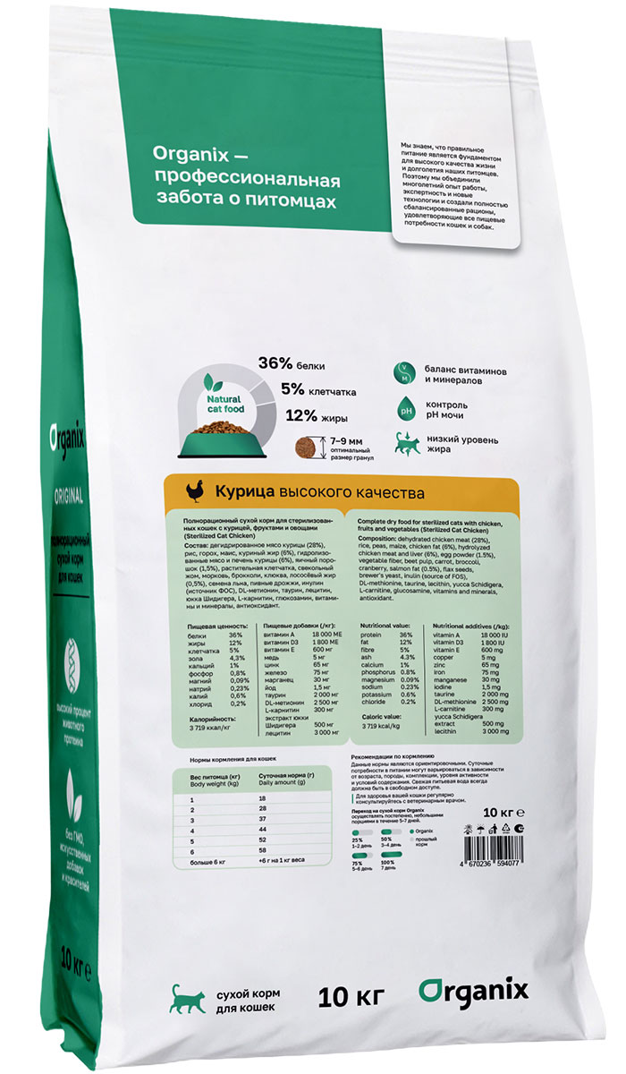 Формула корма ORGANIX ADULT CAT STERILIZED специально разработана с учетом измененных потребностей в питании кошек после стерилизации.