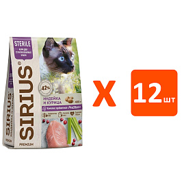 Сухой корм для кастрированных котов и стерилизованных кошек SIRIUS индейка, курица (0,4 кг х 12 шт)