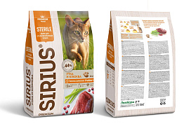 SIRIUS — сухой корм премиум-класса для полноценного ежедневного рациона кастрированных котов и стерилизованных кошек.