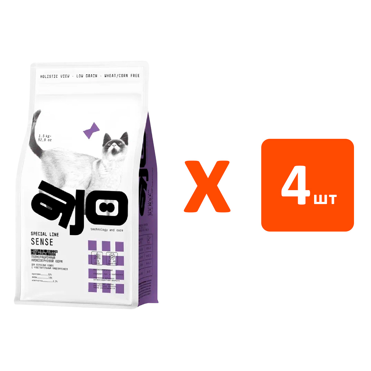 Сухой корм для кошек AJO CAT SPECIAL LINE SENSE с чувствительным пищеварением оленина (1,5 кг х 4 шт)