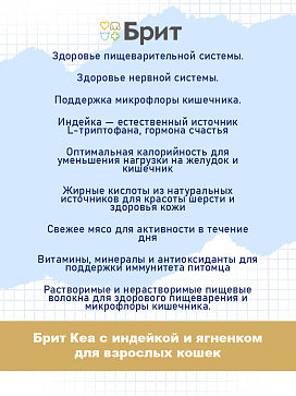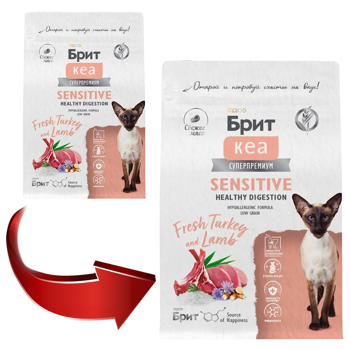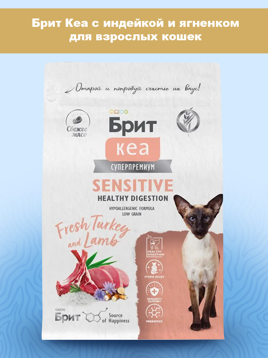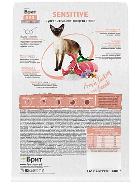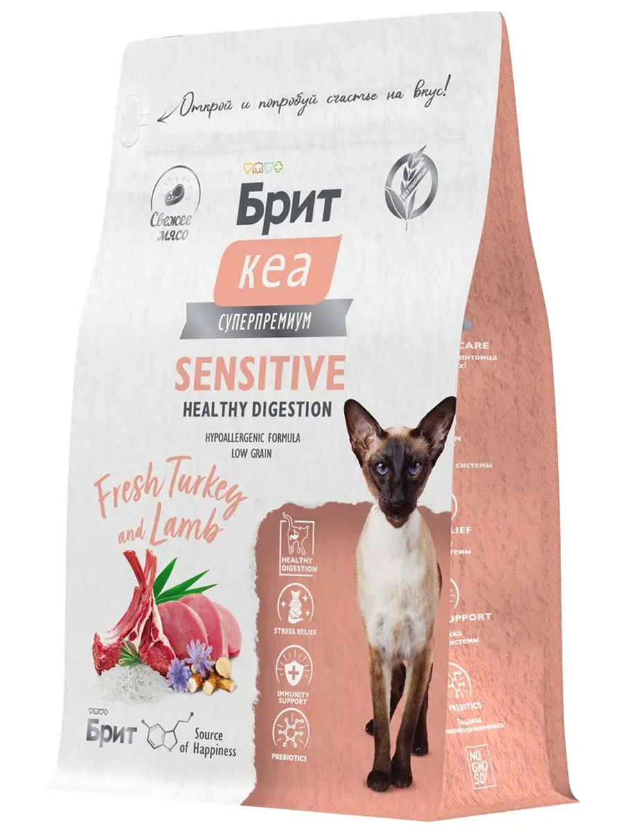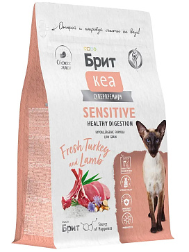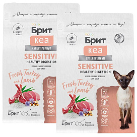 Сухой корм для кошек БРИТ КЕА SENSITIVE HEALTHY DIGESTION с чувствительным пищеварением индейка, ягненок (0,4 + 0,4 кг)