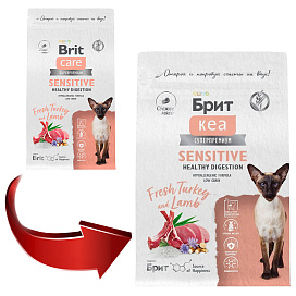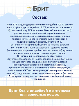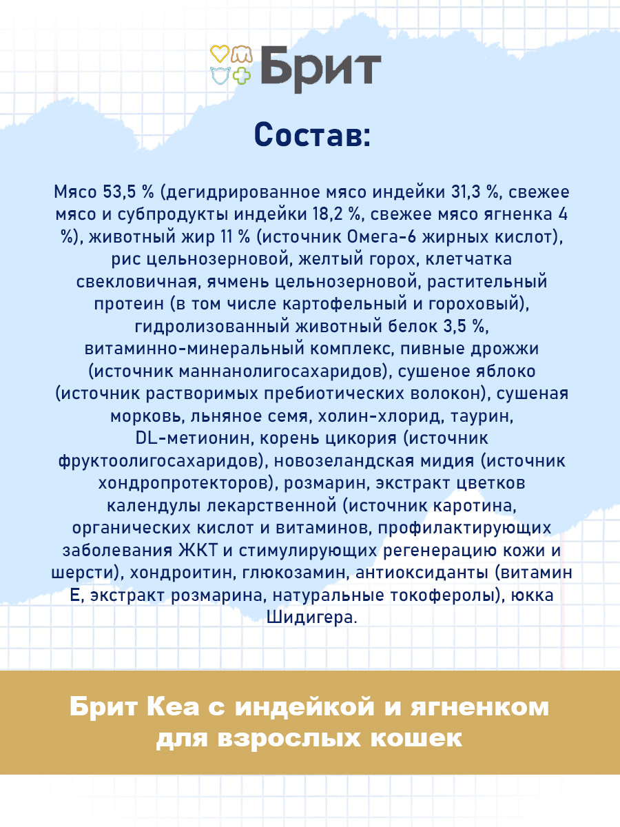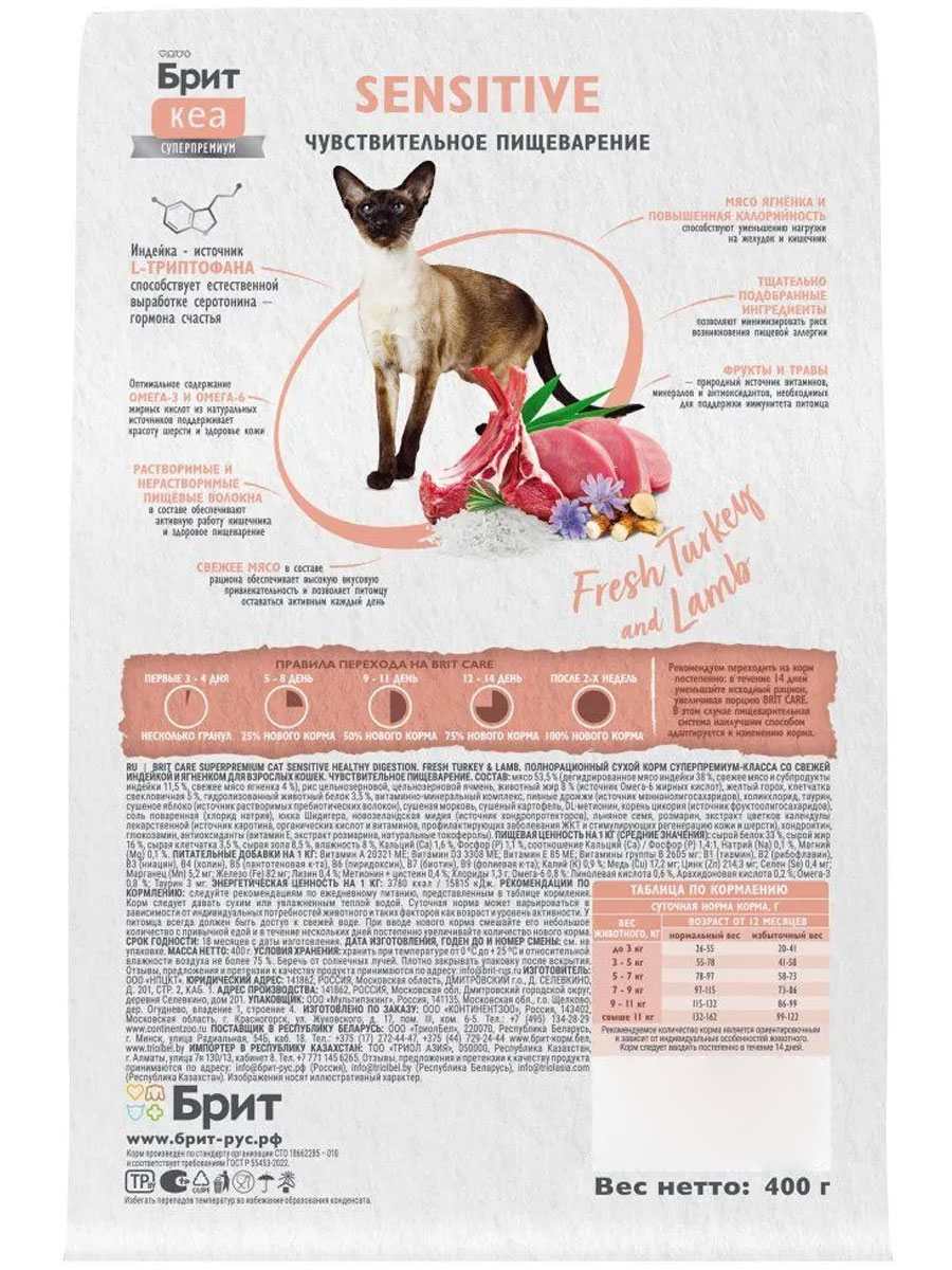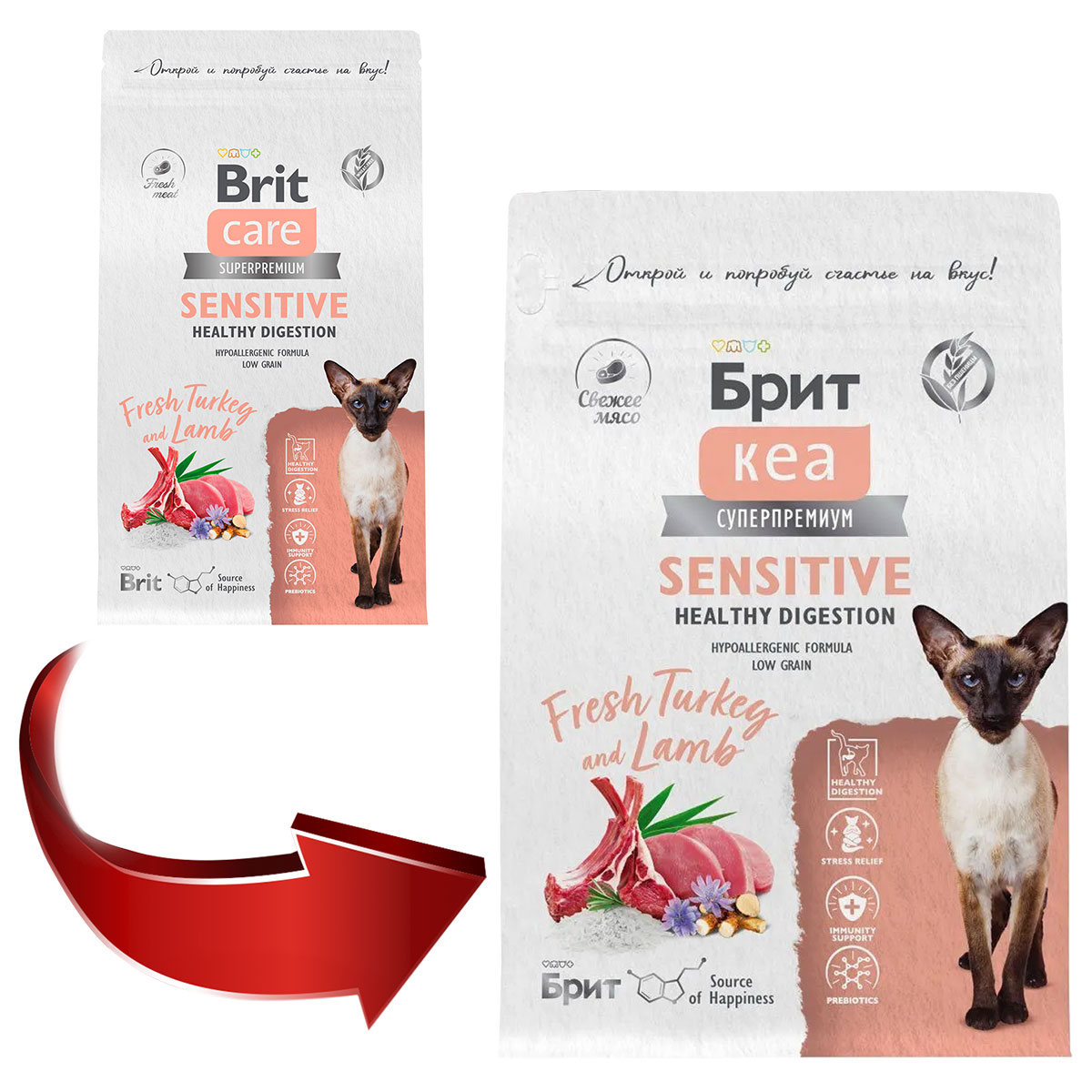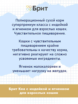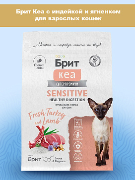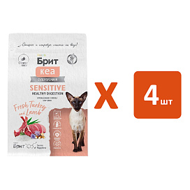 Сухой корм для кошек БРИТ КЕА SENSITIVE HEALTHY DIGESTION с чувствительным пищеварением индейка, ягненок (1,5 кг х 4 шт)