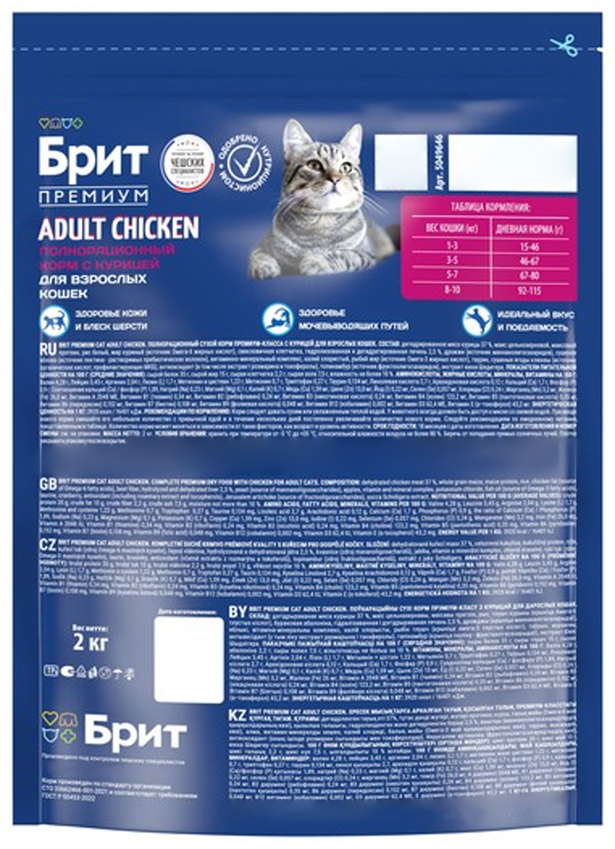 Сухой корм для кошек БРИТ ПРЕМИУМ ADULT курица (2 кг)