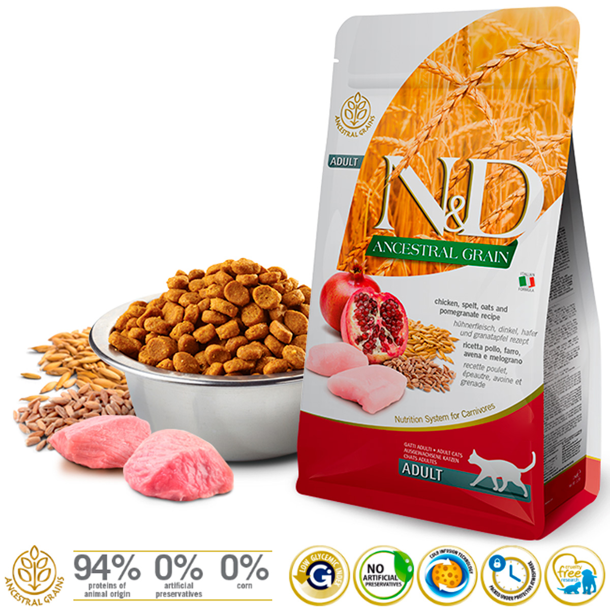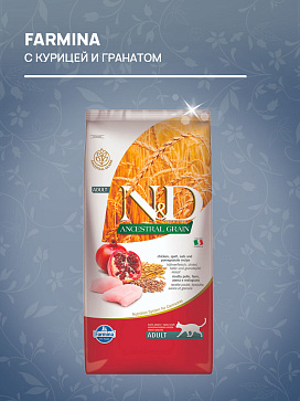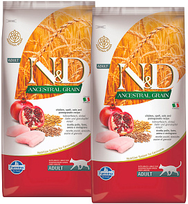 Сухой корм для кошек FARMINA N&D ANCESTRAL GRAIN низкозерновой курица, гранат (10 + 10 кг)