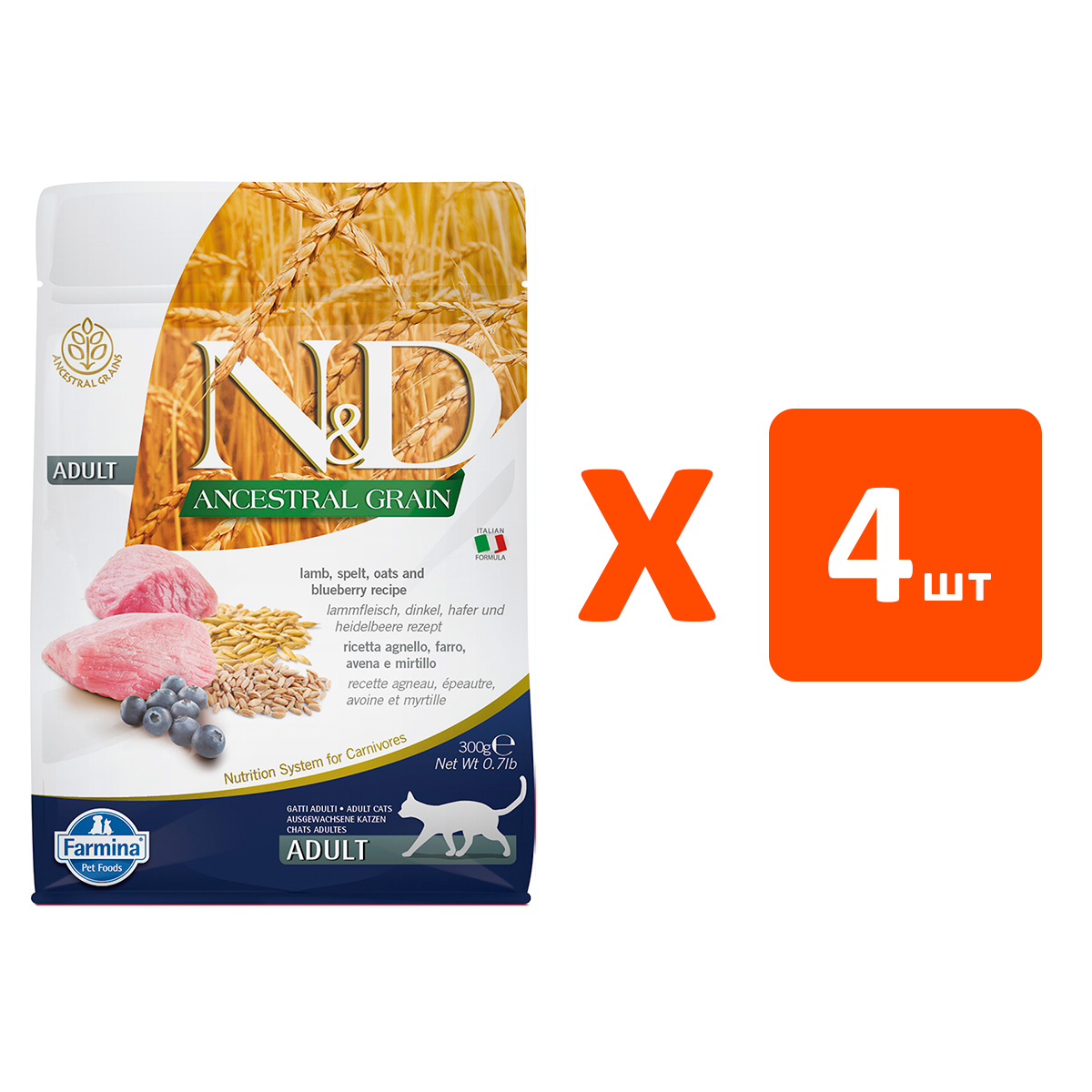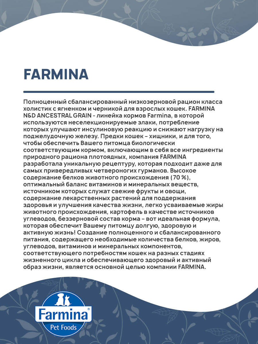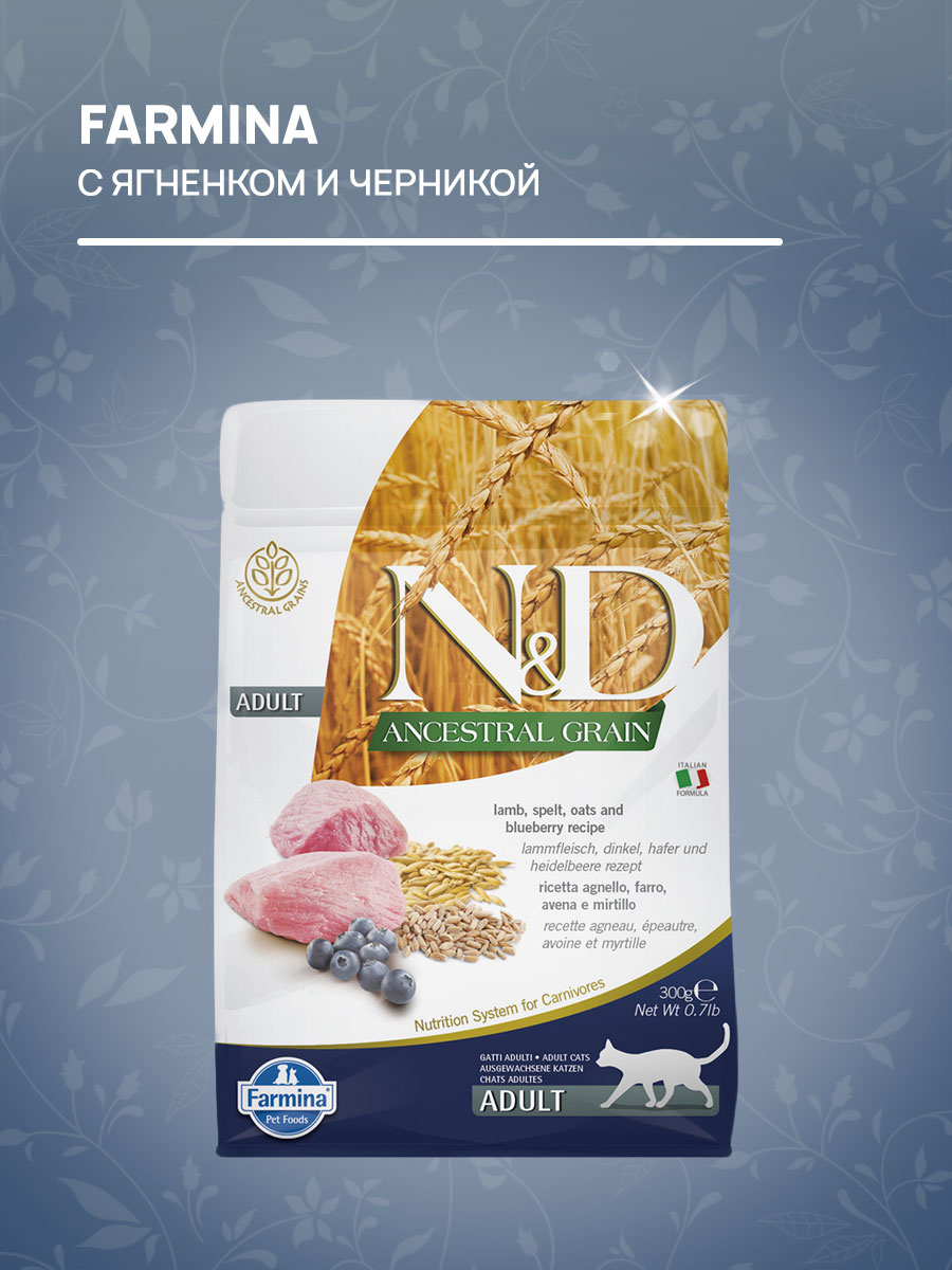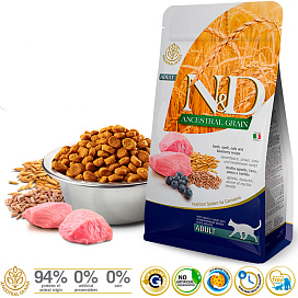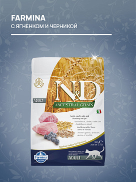 Сухой корм для кошек FARMINA N&D ANCESTRAL GRAIN низкозерновой ягненок, черника (0,3 кг х 4 шт)