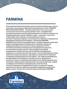 FARMINA N&D ANCESTRAL GRAIN - линейка кормов Farmina, в которой используются неселекционируемые злаки, потребление которых улучшают инсулиновую реакцию и снижают нагрузку на поджелудочную железу.