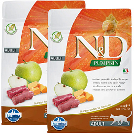 Сухой корм для кошек FARMINA N&D GRAIN FREE PUMPKIN беззерновой оленина, тыква, яблоко (0,3 + 0,3 кг)