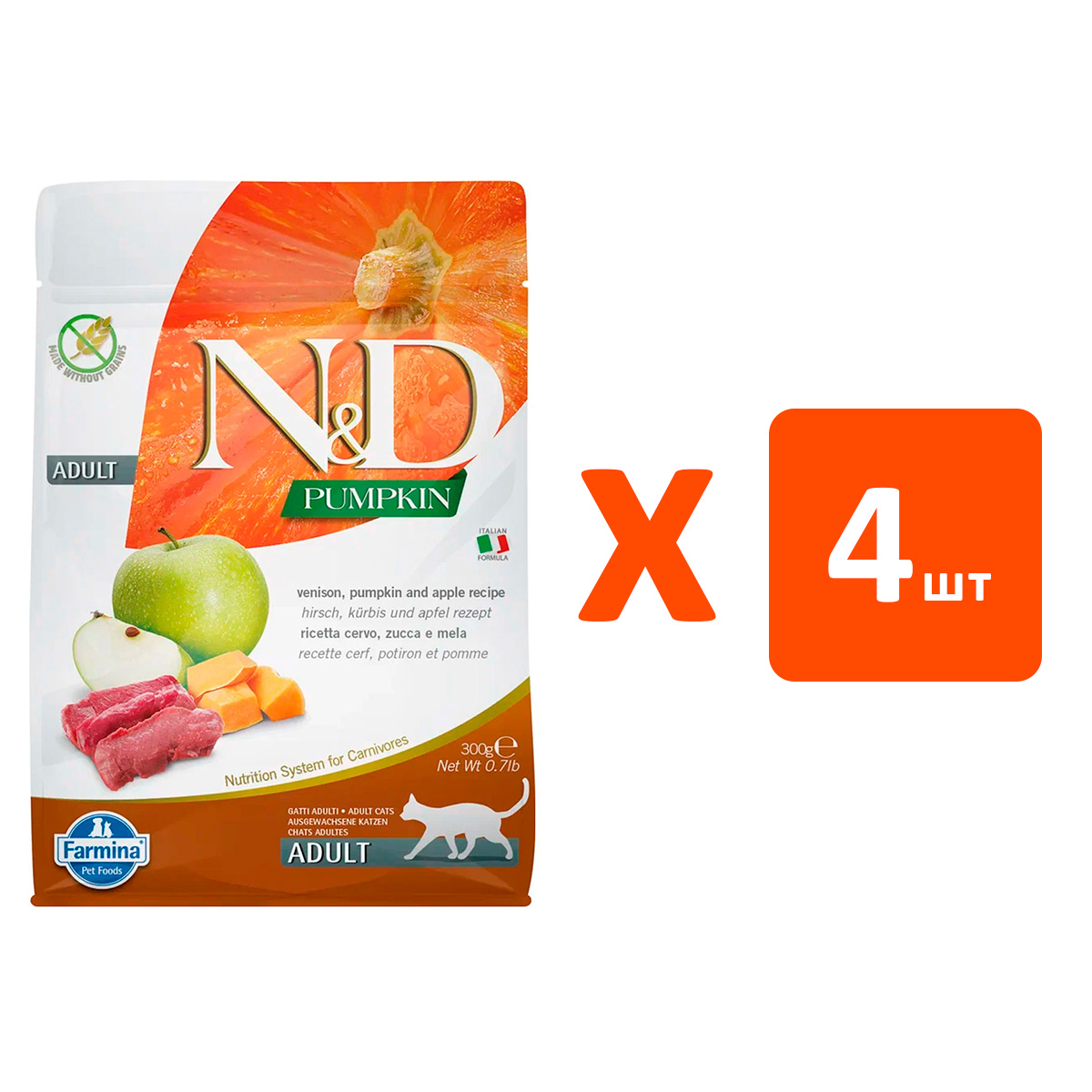 Сухой корм для кошек FARMINA N&D GRAIN FREE PUMPKIN беззерновой оленина, тыква, яблоко (0,3 кг х 4 шт)