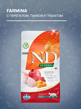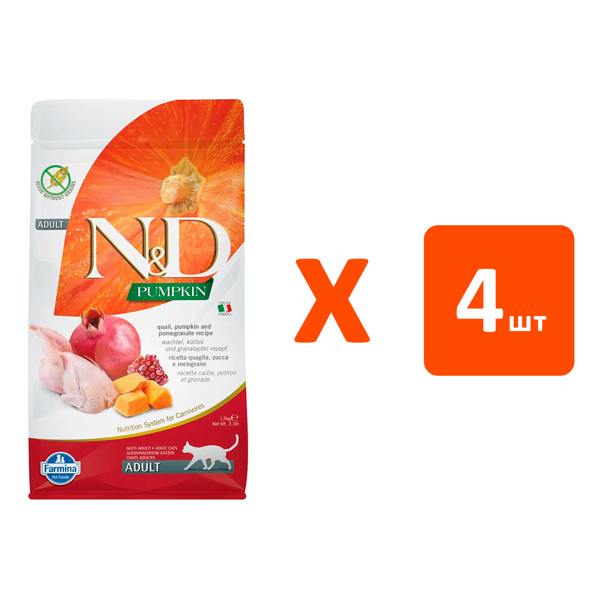 Сухой корм для кошек FARMINA N&D GRAIN FREE PUMPKIN беззерновой перепел, тыква, гранат (1,5 кг х 4 шт)