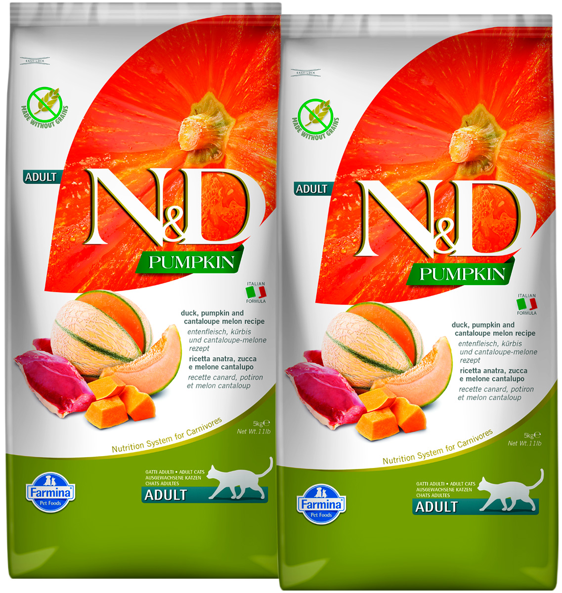 Сухой корм для кошек FARMINA N&D GRAIN FREE PUMPKIN беззерновой утка, тыква, дыня (5 + 5 кг)