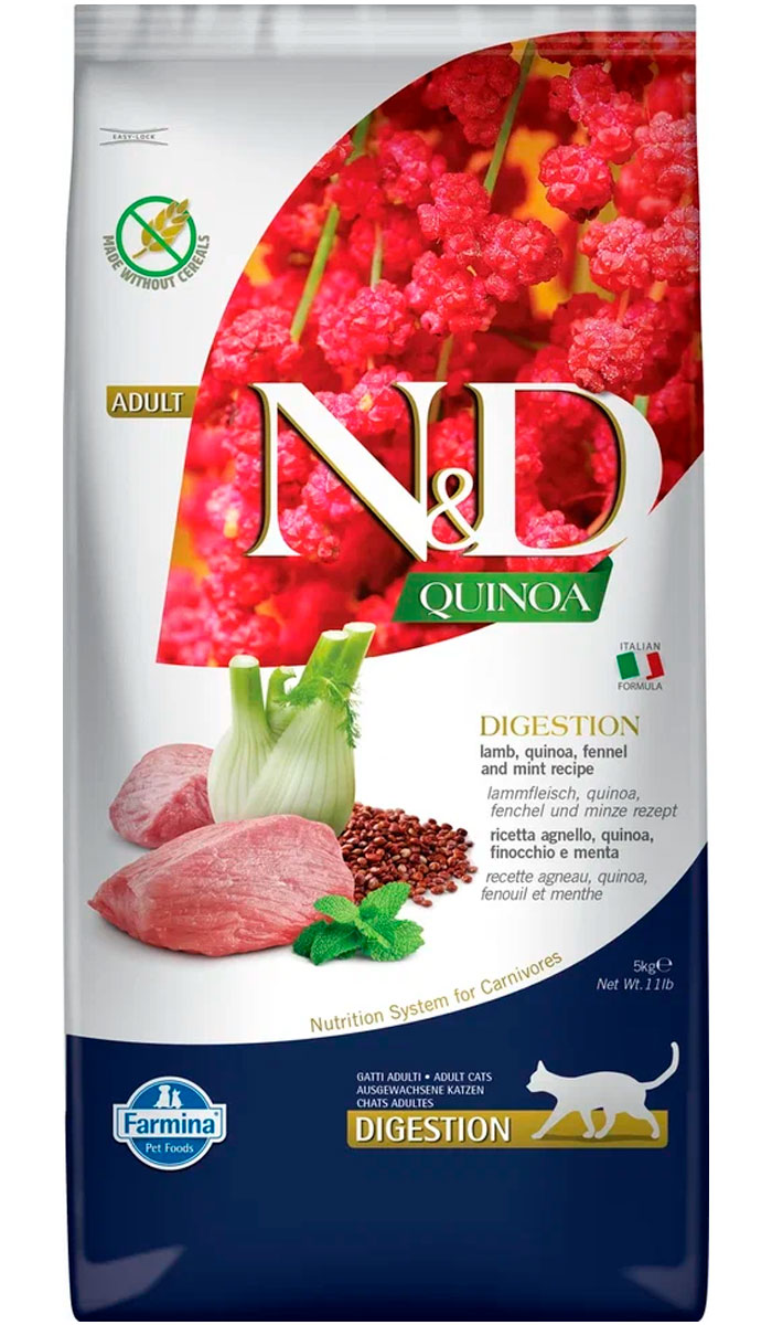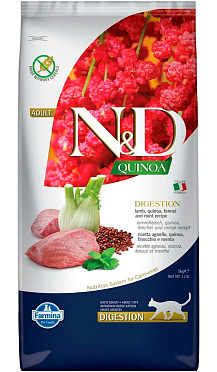 Сухой корм для кошек FARMINA N&D GRAIN FREE QUINOA DIGESTION беззерновой с чувствительным пищеварением ягненок, киноа (5 кг)