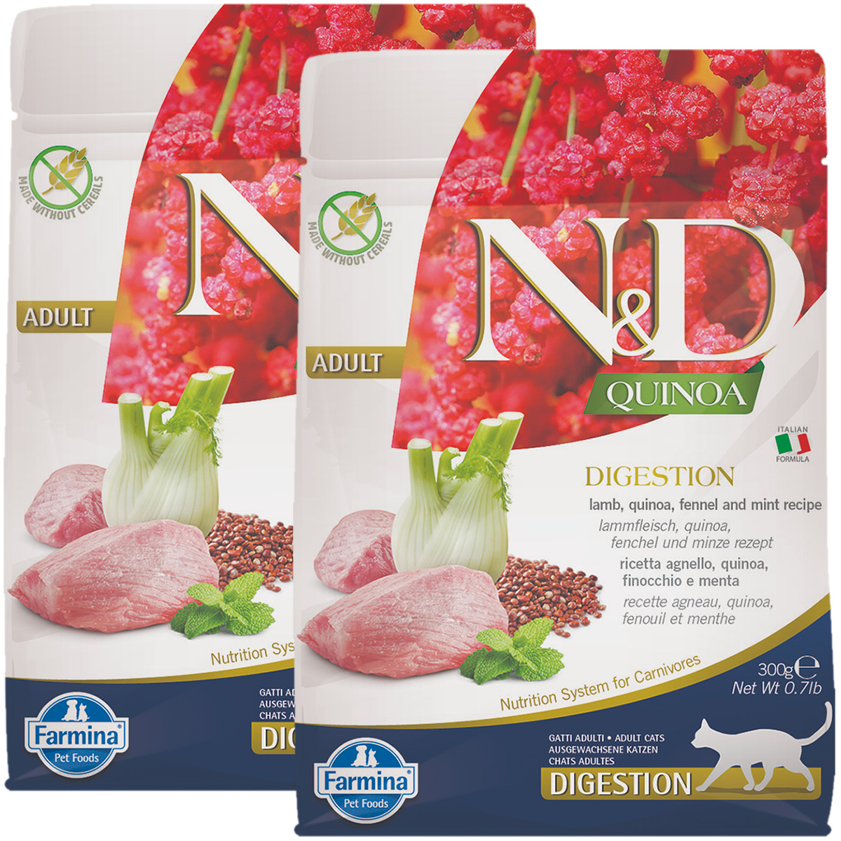 Сухой корм для кошек FARMINA N&D GRAIN FREE QUINOA DIGESTION беззерновой с чувствительным пищеварением ягненок, киноа (0,3 + 0,3 кг)