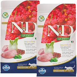 Сухой корм для кошек FARMINA N&D GRAIN FREE QUINOA DIGESTION беззерновой с чувствительным пищеварением ягненок, киноа (1,5 + 1,5 кг)