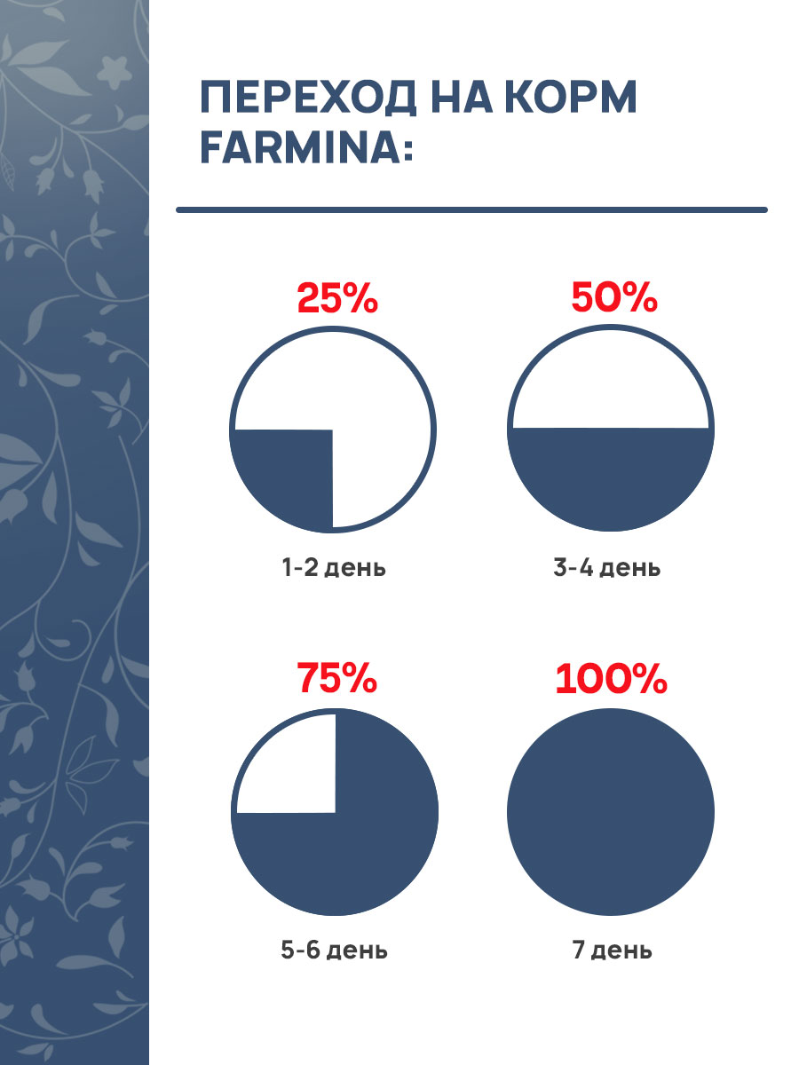 Создание полноценного и сбалансированного питания, содержащего необходимые количества белков, жиров, углеводов, витаминов и минеральных компонентов, соответствующего потребностям кошек на разных стадиях жизненного цикла и обеспечивающего здоровый и активный образ жизни, является основной целью компании FARMINA. Корма FARMINA холистик-класса, а это значит, что при производстве кормов используется высококачественное сырье, которое соответствует по качеству продуктам питания, производимых для человека.